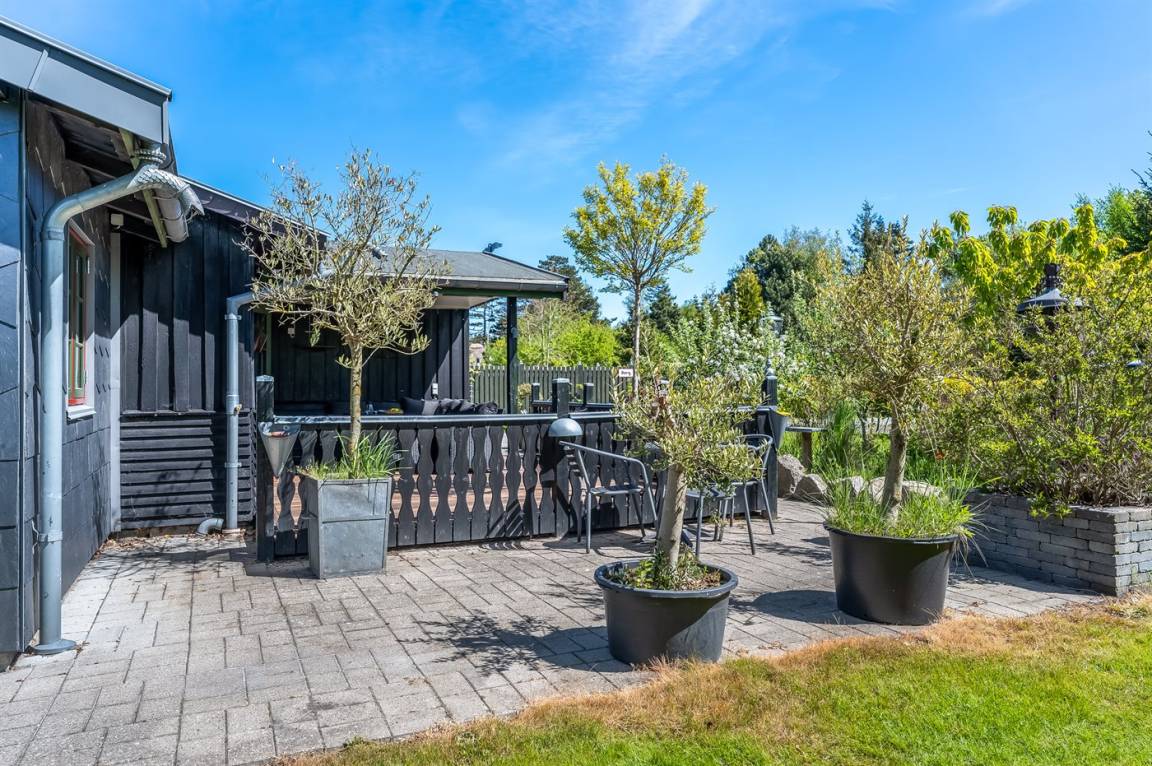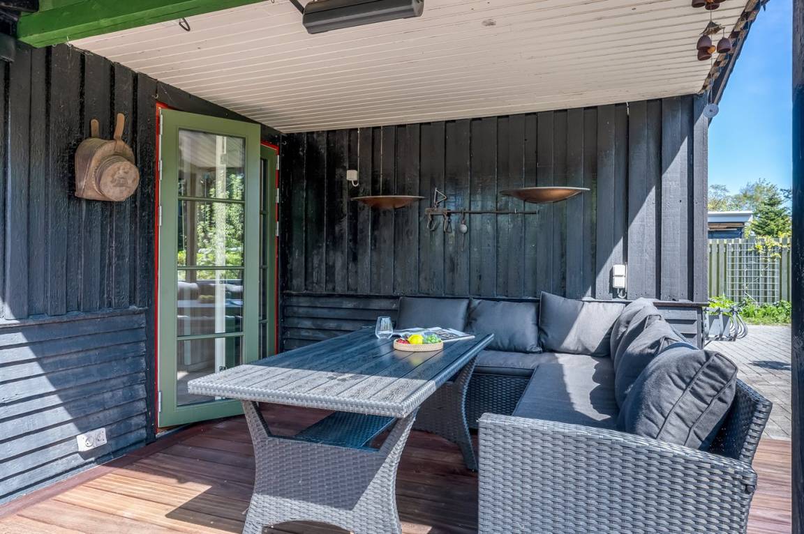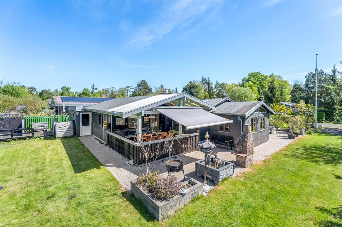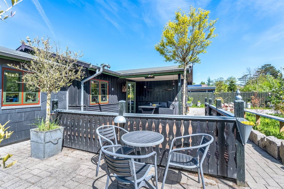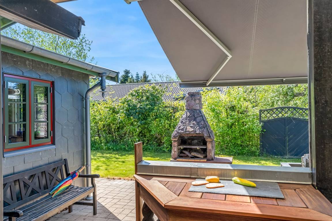 DraußenDie Ferienunterkunft liegt auf einem 800 m² großen Naturgrundstück. Die Entfernung zum Meer beträgt 550 m. Die nächste Einkaufsmöglichkeit liegt 250 m entfernt. Es steht ein offenes Terrassenareal zur Verfügung. Außerdem gibt es überdachte Terrasse.An Sommerabenden sorgt der Außenkamin für eine gemütliche Atmosphäre. Es steht ein Grill zur Verfügung. Parkplatz auf dem Grundstück.
