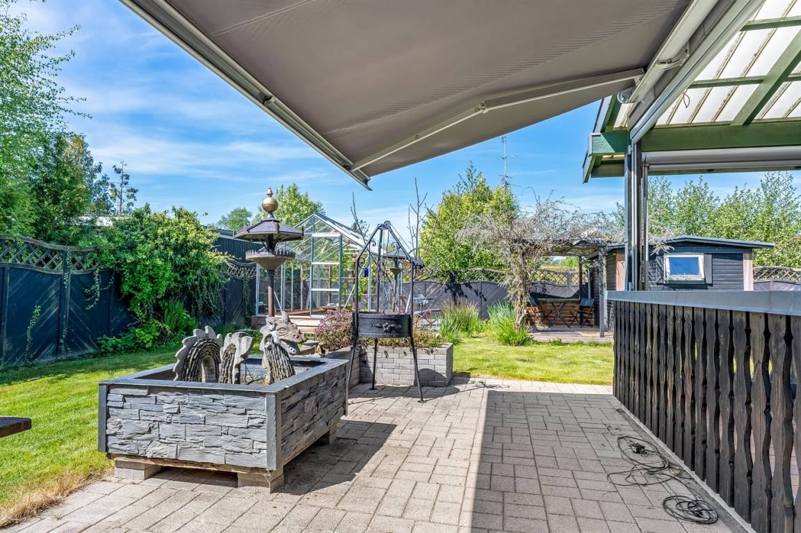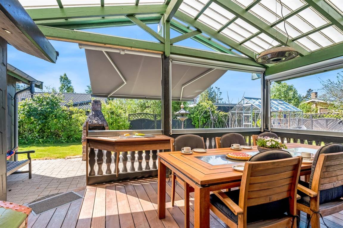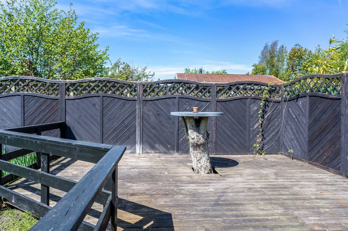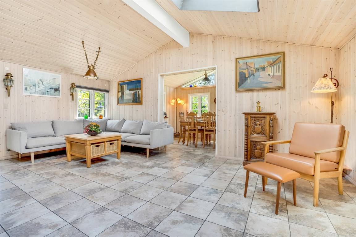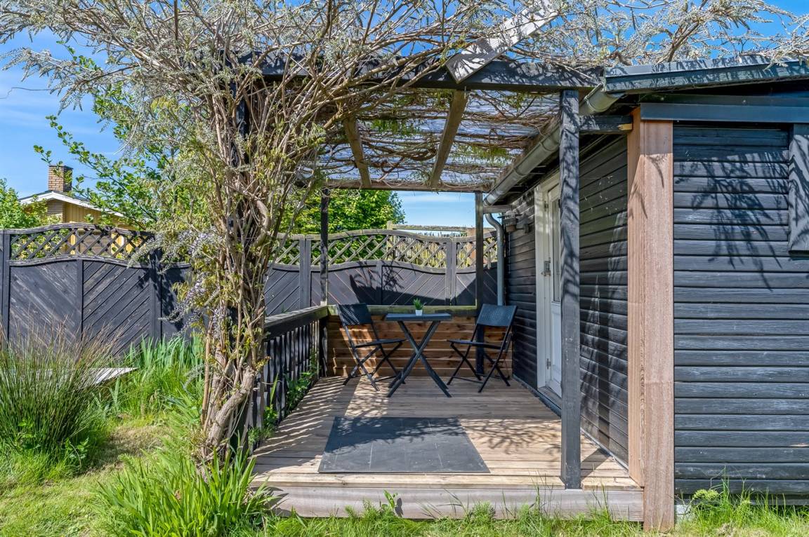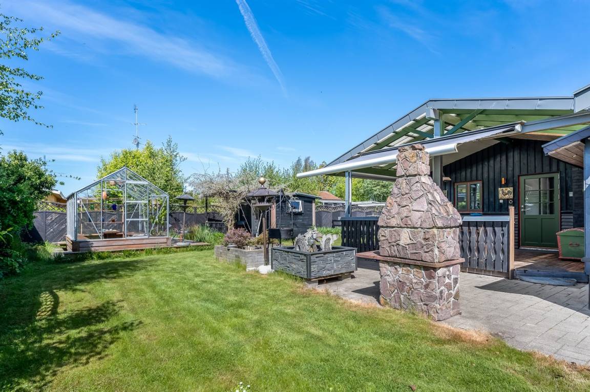 DraußenDie Ferienunterkunft liegt auf einem 800 m² großen Naturgrundstück. Die Entfernung zum Meer beträgt 550 m. Die nächste Einkaufsmöglichkeit liegt 250 m entfernt. Es steht ein offenes Terrassenareal zur Verfügung. Außerdem gibt es überdachte Terrasse.An Sommerabenden sorgt der Außenkamin für eine gemütliche Atmosphäre. Es steht ein Grill zur Verfügung. Parkplatz auf dem Grundstück.