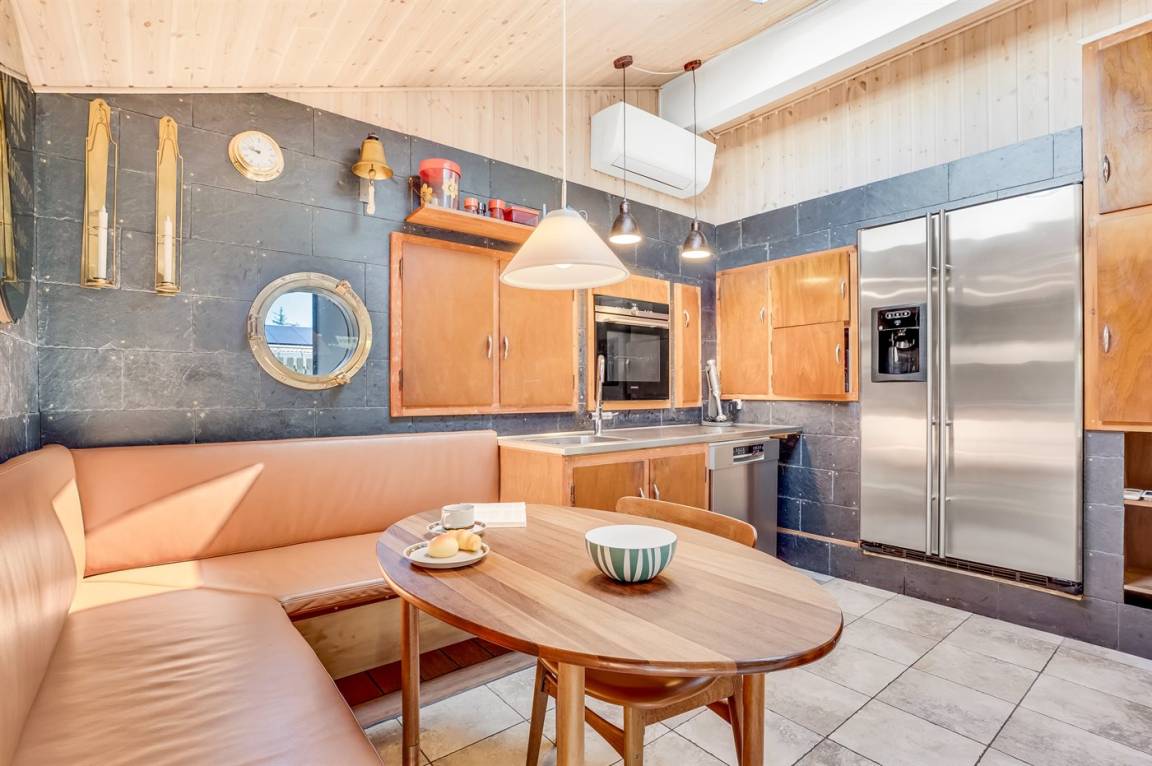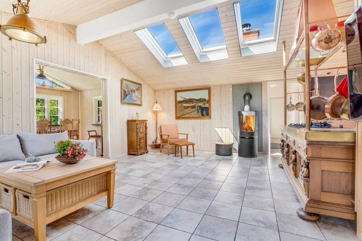 Das Haus bietet Platz für 4 Personen und verfügt über einen behaglichen Wohn-/Essbereich mit Kaminofen, TV und Chromecast.