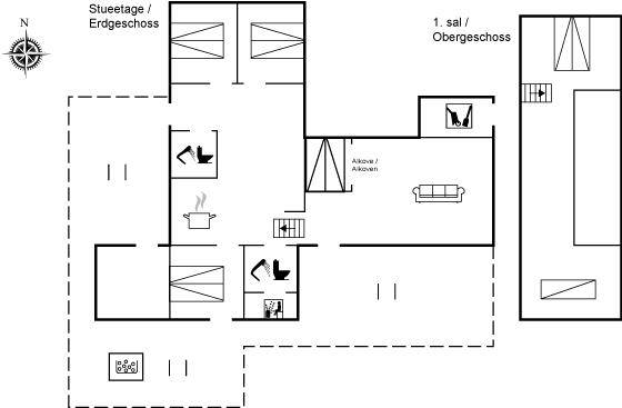 SchlafverhältnisseDie Schlafplätze verteilen sich auf 3 Schlafräume. 8 Schlafplätze in Doppelbetten. 2 Schlafplätze auf einer Doppelschlafcouch.2 Schlafplätze im Alkoven. 2 von diesen Schlafplätzen befinden sich im Wohnzimmer und 2 befinden sich im offenen Obergeschoss. Ferner stehen 2 Kinderbetten zur Verfügung.