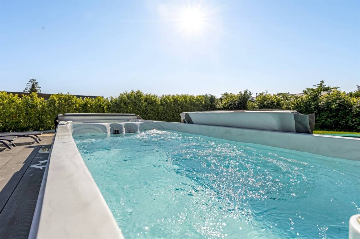 Der große Swimspa im Freien für 5 + 2 Personen ist in zwei Bereiche unterteilt – an einem Ende findest du den Swimspa, am anderen den Whirlpool. Das bedeutet Massagetherapie, rotierende Düsen, stimmungsvolle LED-Beleuchtung unter und über der Wasserlinie u.v.m.