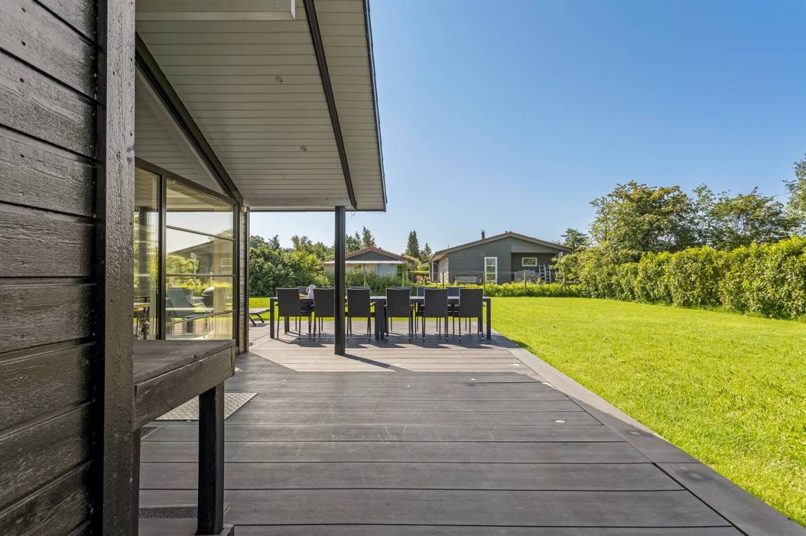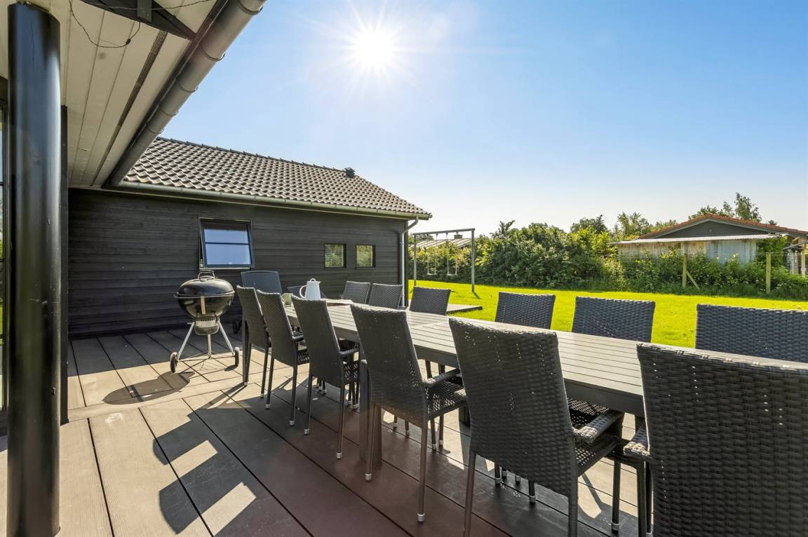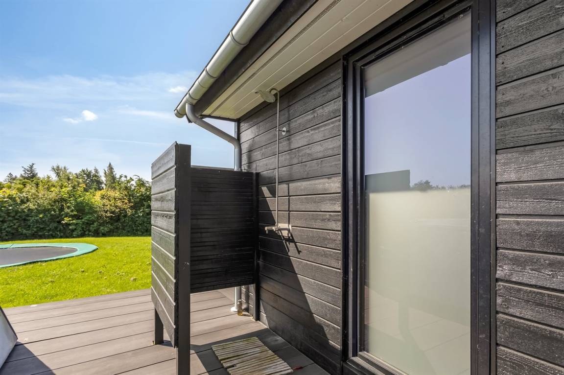 DraußenDie Ferienunterkunft liegt auf einem 1216 m² großen Gartengrundstück. Die Entfernung zum Meer beträgt 500 m. Es gibt einen Badesteg in der Nähe. Die nächste Einkaufsmöglichkeit liegt 200 m entfernt. In einem Abstand von 1000 m gibt es einen Golfplatz. Es steht ein offenes Terrassenareal zur Verfügung. Außerdem gibt es überdachte Terrasse. Schaukel. Trampolin. Fußballtor.Lagerfeuerstelle. Außendusche. Es beteht die Möglichkeit das Essen in der Außenküche zuzubereiten. Es steht ein Grill zur Verfügung. Parkplatz auf dem Grundstück.
