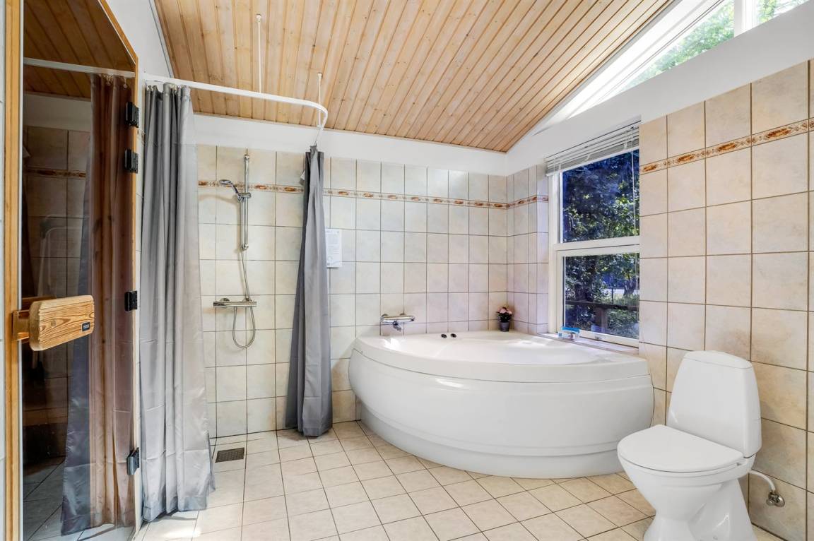 Ein modernes Sommerhaus aus Holz, 2000 gebaut, mit Whirlpool sowohl innen als auch außen, auf einem Naturgrundstück - nur 100 m vom besten Sandbadestrand Dänemarks entfernt gelegen. Schönes offenes und überdachtes Terrassenareal mit Gartenmöbeln und Außen-Whirlpool für 6 Personen (Standwasser), der das ganze Jahr hindurch auf 38 Grad erheizt ist.