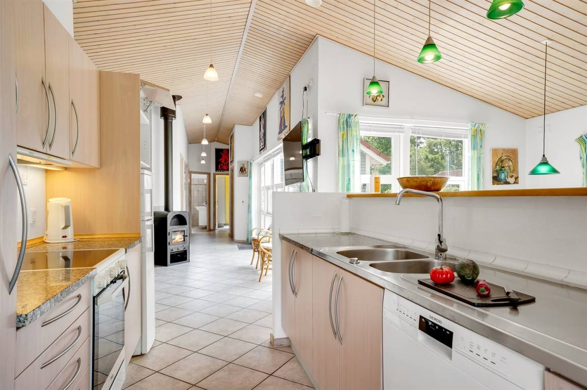 Die helle Küche liegt in Verbindung mit dem Wohnzimmer und ist mit Tiefkühlgerät, Herd mit Ceran-Feld, Umluftofen, Mikrowelle und Geschirrspüler augestattet. Gemütliches und modernes Wohnzimmer mit Kaminofen, Smart-TV, und Radio. Ferner stehen Waschmaschine, Wäschetrockner, kostenlose kabellose Internetverbindung und Playstation4 zur Verfügung. An die jüngsten Feriengäste ist ebenfalls gedacht indem Sandkasten und Schaukel vorhanden sind. Ein Energiefreundliches Haus, da eine Wärmepumpe installiert ist.
