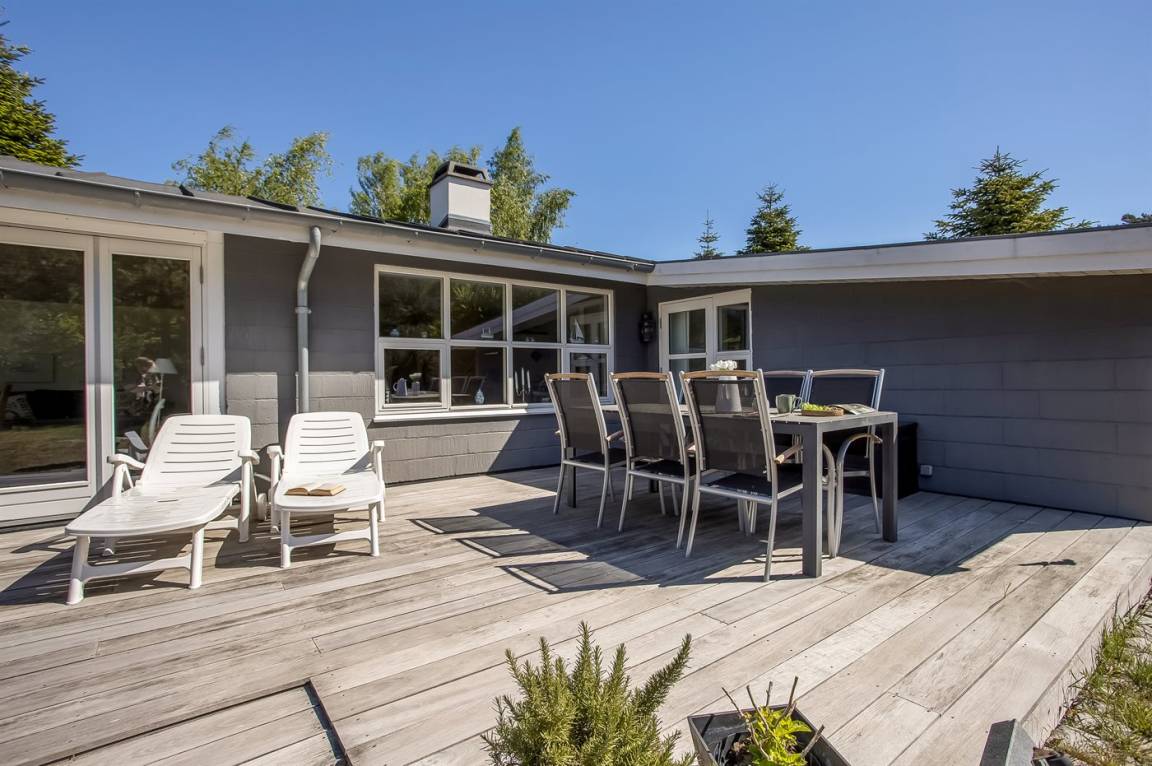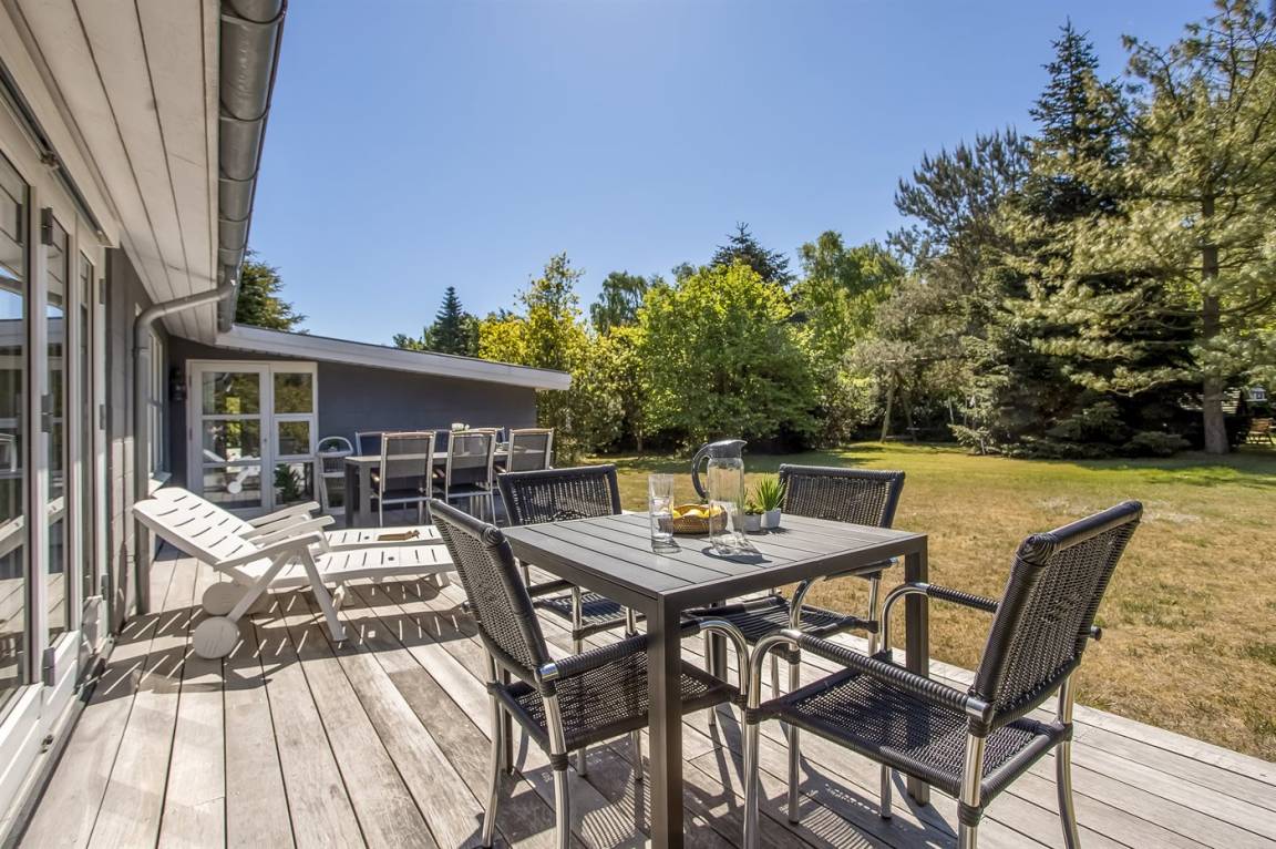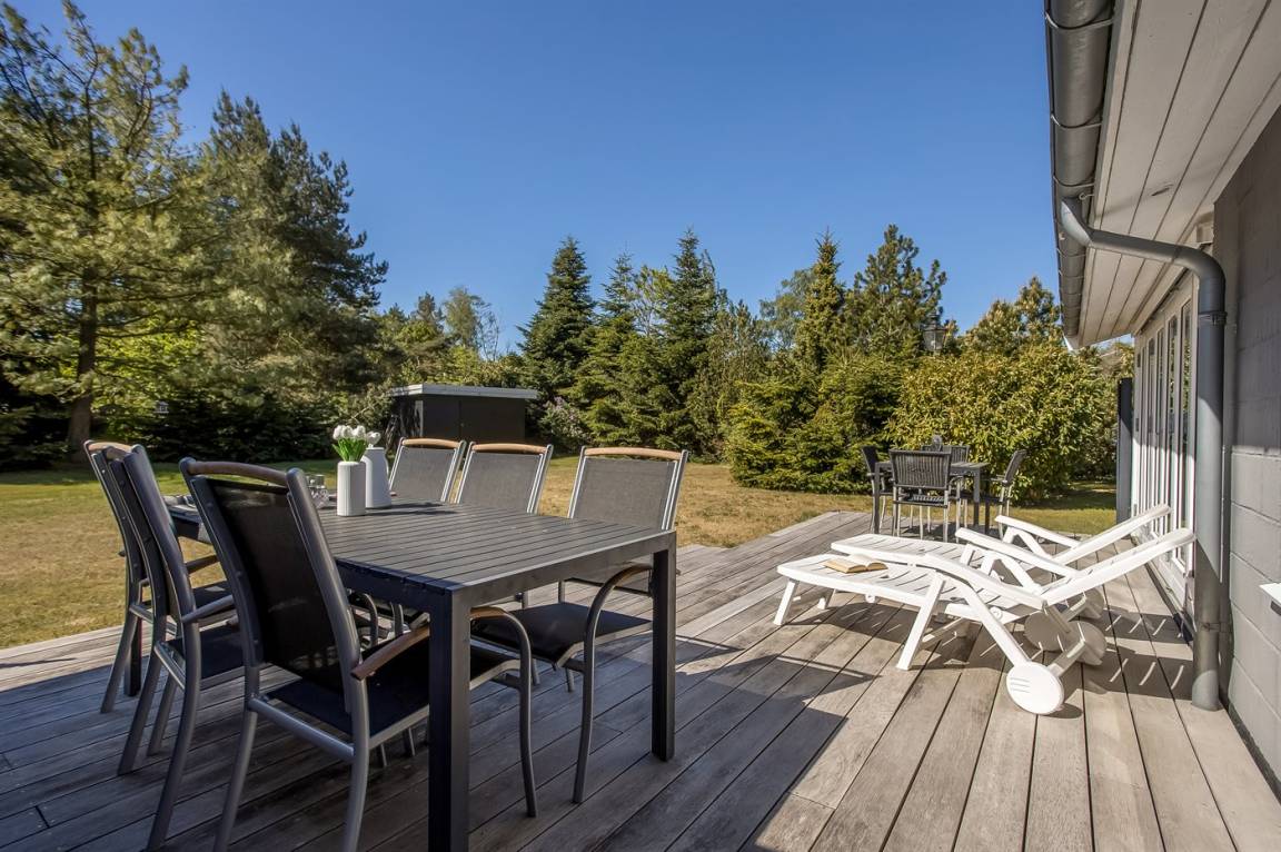 DraußenDie Ferienunterkunft liegt auf einem 1426 m² großen Naturgrundstück. Die Entfernung zum Meer beträgt 500 m. Die nächste Einkaufsmöglichkeit liegt 600 m entfernt. In einem Abstand von 400 m gibt es einen Golfplatz. Es steht ein offenes Terrassenareal zur Verfügung. Schaukel. Kinderspielhaus. Es steht ein Grill zur Verfügung. Parkplatz auf dem Grundstück.