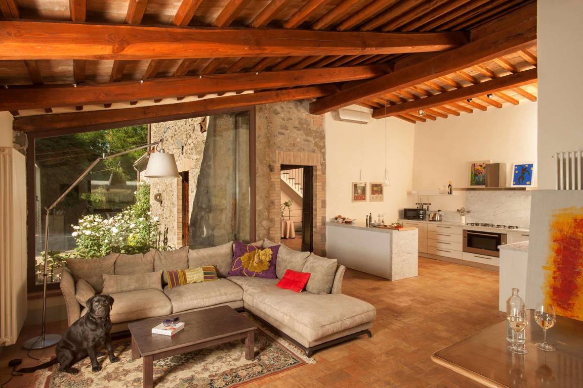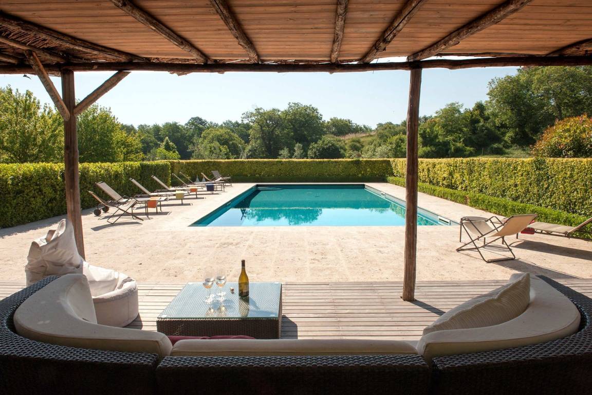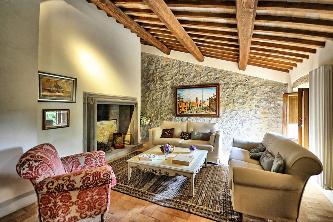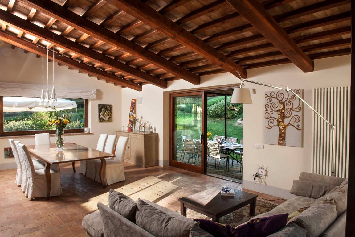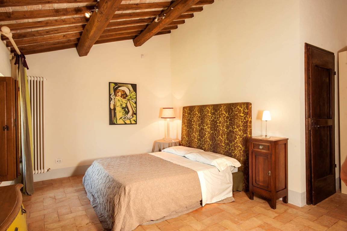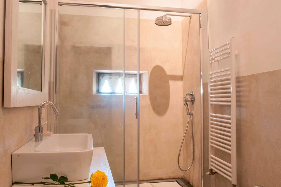 Die Villa Collombroso ist eine großzügige Immobilie mit drei Geschossen, ausgelegt für bis zu 12 Gäste, mit 5 Schlafzimmern und 6 Bädern. Das Erdgeschoss umfasst einen Eingangsbereich mit Wohnzimmer und Kamin mit offenem Herd, eine vollständig ausgestattete Küche, die in einen Wohn- und Essbereich mit Kamin mit offenem Herd übergeht, sowie zwei große Fenster mit Blick auf den Pool. Von diesem Bereich führt eine gepflasterte Terrasse mit Esstisch nach außen. Ebenfalls im Erdgeschoss befinden sich ein Schlafzimmer mit zwei Einzelbetten, umwandelbar in ein Doppelbett, mit eigenem Bad mit Dusche, sowie ein zweites Schlafzimmer mit Doppelbett und eigenem Bad mit Dusche. Das erste Obergeschoss enthält einen Wohnbereich mit Doppelschlafsofa und einem nicht funktionsfähigen Kamin mit offenem Herd. Das zweite Obergeschoss, untergebracht im Turm der Villa, beherbergt ein Schlafzimmer mit Doppelbett, Holzböden und eigenem Bad mit Dusche. Die verbleibenden zwei Schlafzimmer befinden sich im Untergeschoss mit direktem Zugang zum Garten; beide sind mit Doppelbetten ausgestattet und verfügen jeweils über ein eigenes Bad mit Dusche. Ein separates Häuschen neben dem Pool enthält eine Sommerküche und ein zusätzliches Bad mit Dusche.
