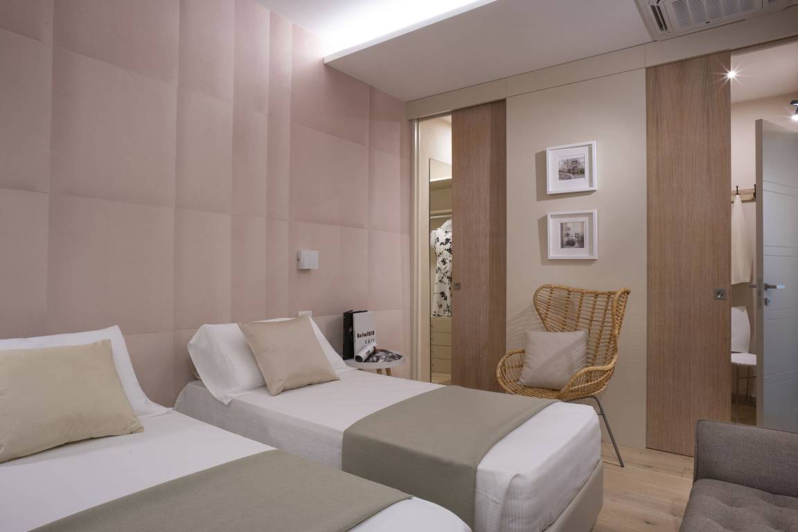 Schlafzimmer mit Bad 1: zwei Einzelbetten, WiFi Internet, Klimaanlage, Waschbecken, WC, Dusche.