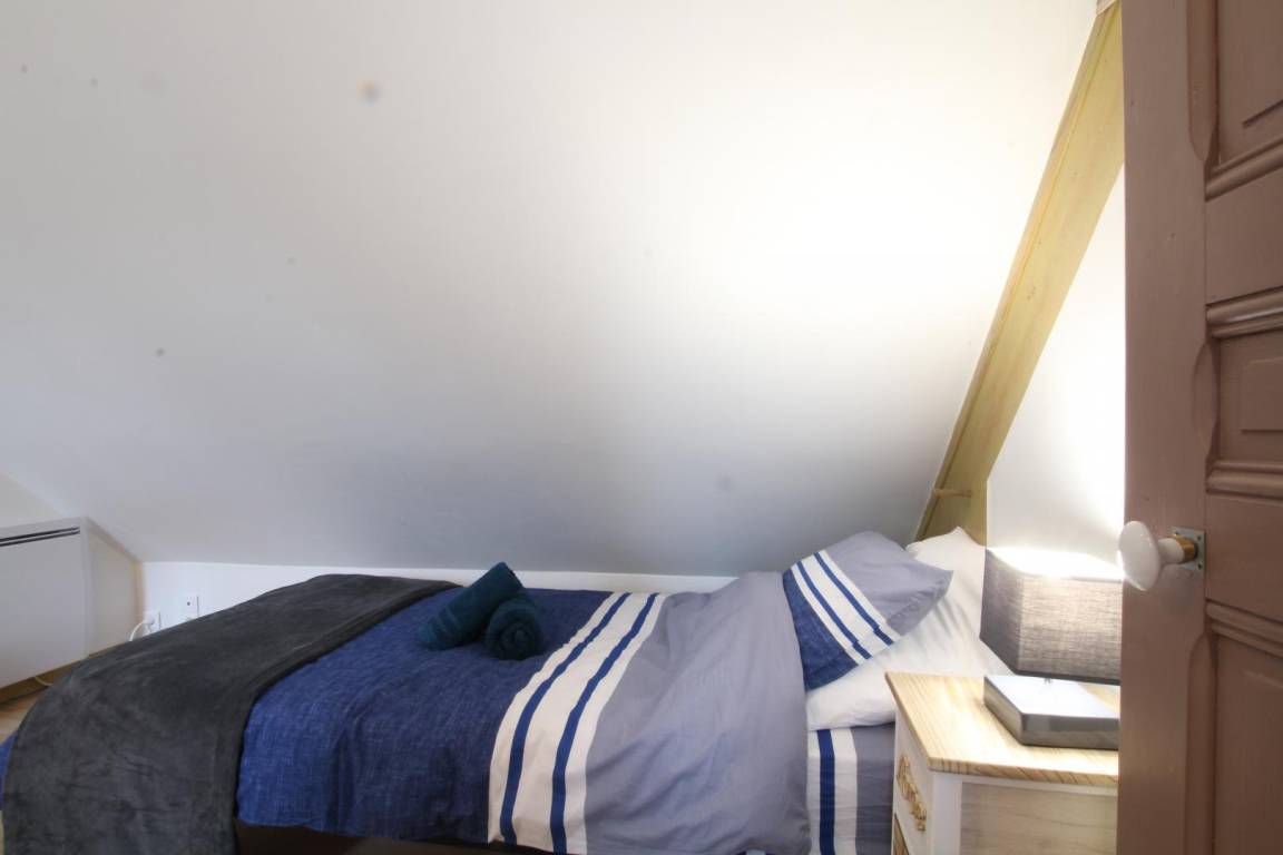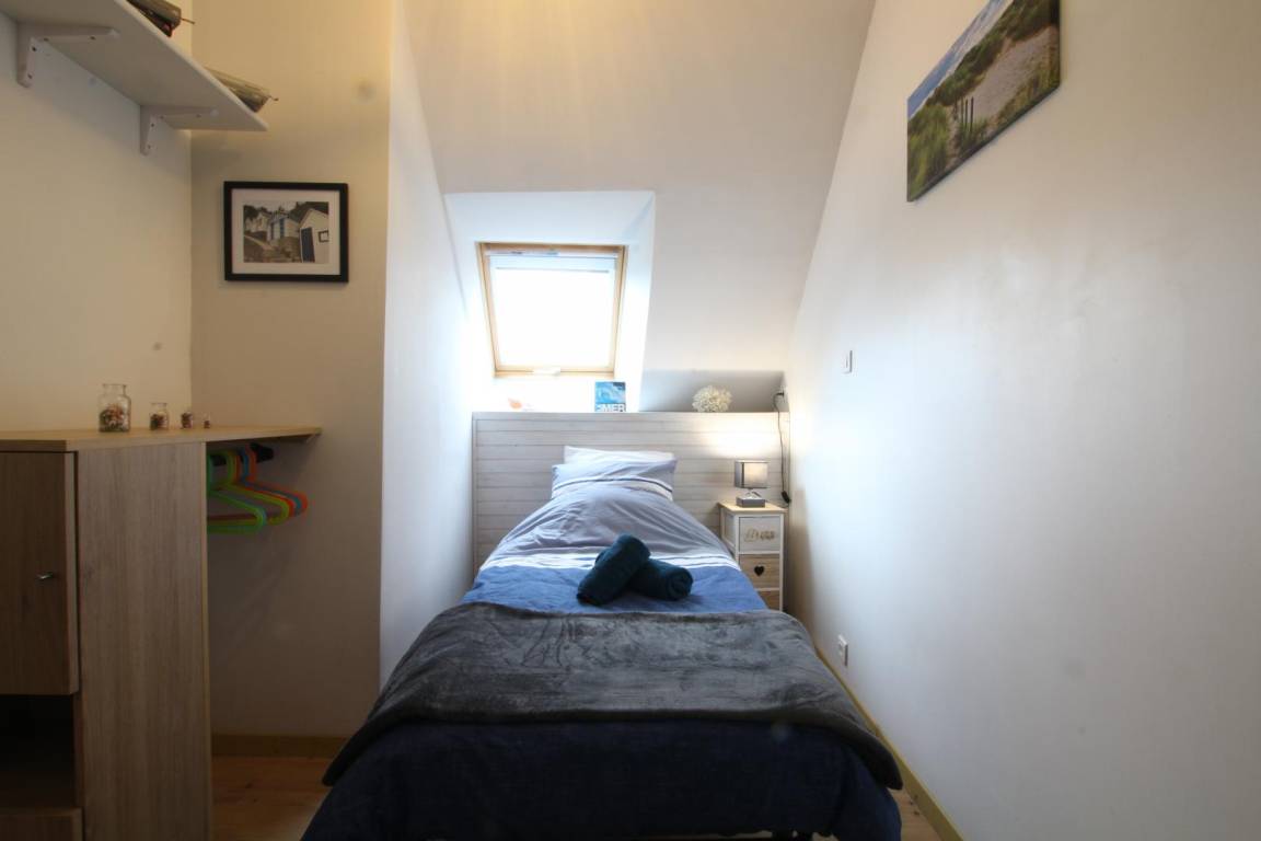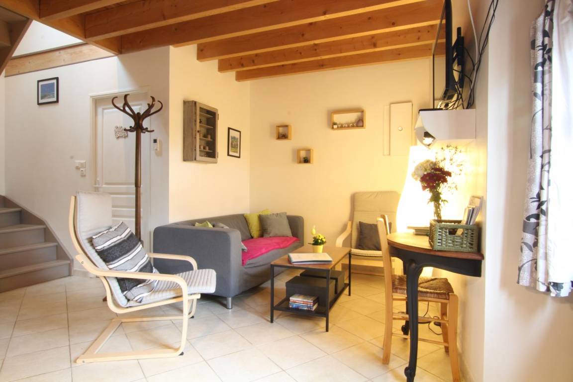 Freistehendes Haus. Erdgeschoss: Wohnzimmer mit Sitzecke (Holzofen, Holz vorhanden) und offener Küche (Mikrowelle, Geschirrspüler, Gefrierfach, Kaffeepadmaschine, Minibackofen). Wohnbereich mit TV, WLAN- oder LAN-Internet, DVD-Player, Radio/CD-Player und Bluetooth-Lautsprecher. Badezimmer mit WC (Dusche). Im Obergeschoss führt der Treppenabsatz zu 2 Dachgeschossschlafzimmern, eines mit Doppelbett (140x190) und das andere mit zwei Einzelbetten (90x190). Babyausstattung (Kinderbett und Hochstuhl). Eingezäunter Garten. Überdachte Terrasse. Durch ein Tor gesicherter Innenhof. Gartenmöbel. Liegestühle. Grill. Unterstand (Waschmaschine, Spüle). Tischfußball. Parkplatz. Outdoor-Spiele für Kinder (kleine Rutsche, Schläger, Strandspiele usw.). 3 Fahrräder und ein kleiner Bollerwagen verfügbar. Bettwäsche und Handtücher optional. Reinigung gegen Aufpreis. Heizung gegen Aufpreis.
