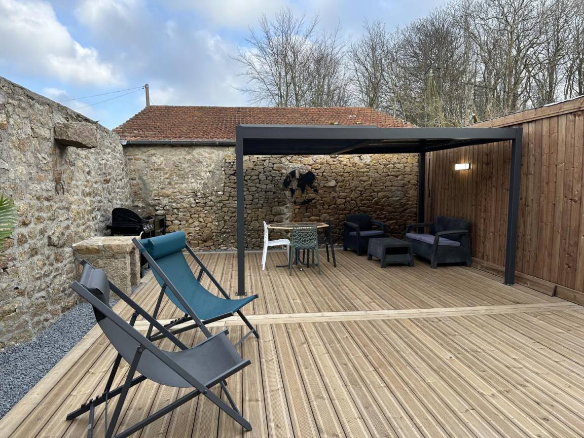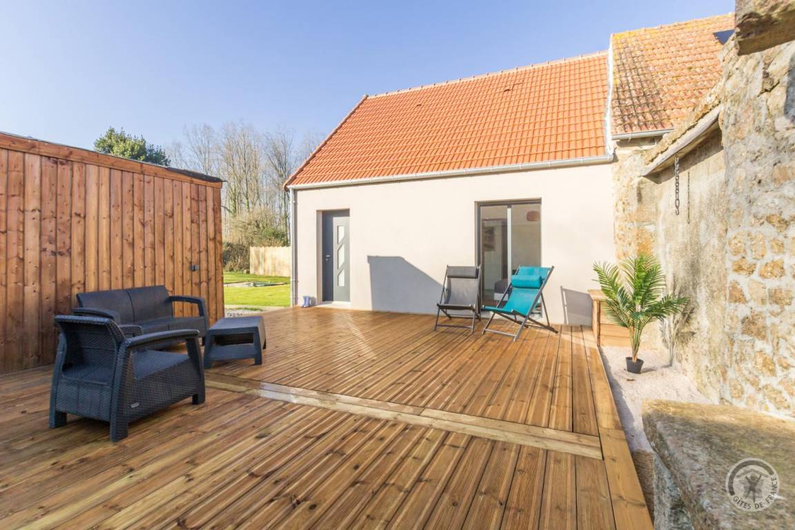 Am Rande des weitläufigen Waldparks von Château de St. Pierre und seiner umlaufenden Mauer liegt dieses kleine Haus mit einem wunderschönen, geschützten und privaten Außenbereich. Dominique hat die ehemalige Scheune komplett renoviert und mit viel Liebe zum Detail dieses gemütliche Häuschen geschaffen. Das helle, nach Süden ausgerichtete Wohnzimmer bietet einen herrlichen Blick auf die umliegende Landschaft. Eine große, 65 m² große Holzterrasse vor dem Haus schließt direkt an den Wohnbereich an. Dank ihrer Pergola wird sie in den wärmeren Monaten fast zum Hauptraum! Zahlreiche Wanderwege befinden sich in der Nähe, darunter die malerische Route durch das Mühlental mit seinem alten Viadukt. Das Anwesen liegt ganz in der Nähe des Dorfes St. Pierre Eglise mit seinen Geschäften und dem Wochenmarkt. Im Herzen des Val de Saire gelegen, können Sie die Juwelen der Halbinsel bequem entdecken, von Cap Lévi über das denkmalgeschützte Dorf Barfleur bis hin zum Hafen von Saint-Vaast-la-Hougue und de
