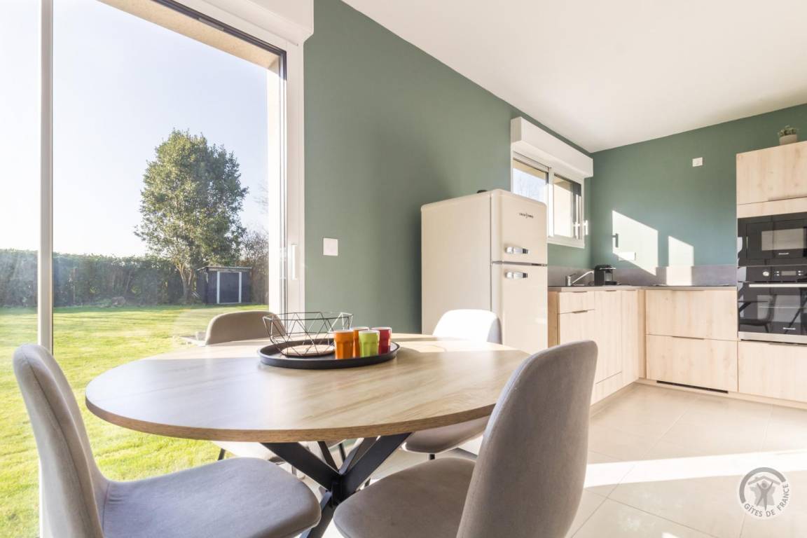 Freistehendes Haus. Komplett ebenerdig. Wohnzimmer (TV, Glasfaser-Internet) mit offener Küche (Backofen, Induktionskochfeld, Mikrowelle, Geschirrspüler, Kühlschrank mit Gefrierfach, Kapselkaffeemaschine). Duschbad (ebenerdige Dusche) mit Waschmaschine. Separates WC. Schlafzimmer 1 (Queensize-Bett) mit Zugang zur Terrasse. Schlafzimmer 2 (Einzelbett). Babyausstattung auf Anfrage erhältlich. Elektrische Heizung inklusive. Bettwäsche und Handtücher werden gestellt. Die Betten sind bei Ankunft bezogen. Reinigungsservice gegen Aufpreis (vor Ort zu zahlen). Privater, umzäunter Garten. Große Terrasse mit Pergola. Gartenmöbel. Sonnenliegen. Grill. Parkplatz. Gesichertes Grundstück mit Tor.