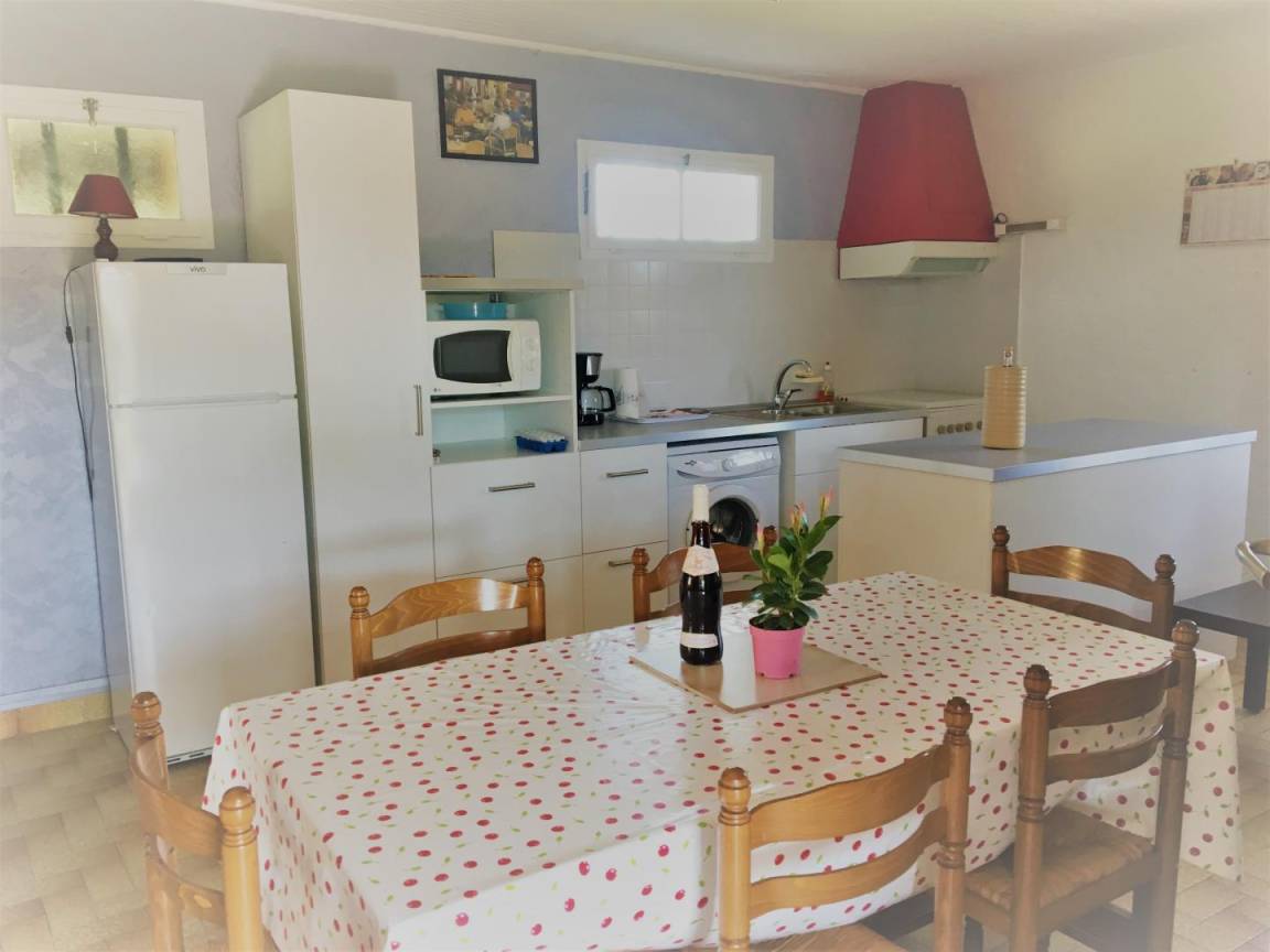 Auf Gartenebene: Wohnzimmer, ein Schlafzimmer mit 1 Doppelbett (140cm), 1 Schlafzimmer mit Einzelbett und zwei Stockbetten 1 Platz. Badezimmer mit WC. Elektrische Heizung. Telefon-Festnetz. Gefrierfach.