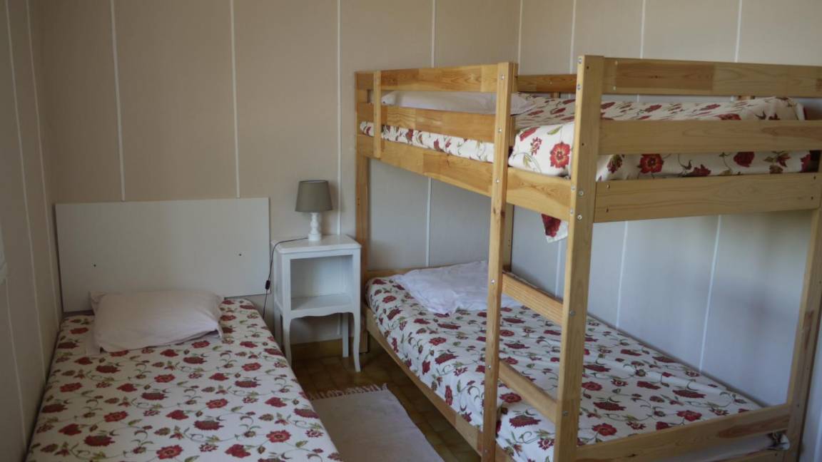 Erdgeschoss: Wohnzimmer mit Kochnische. Ein Zimmer mit 1 Bett 2 Plätze (140cm), 1 Schlafzimmer mit 1 x 1 Bett (90cm) und 2 Betten Koje 1 Platz (90cm), Duschbad mit WC. Gefrierfach. Elektrische Heizung. Autobahn 500 m auf der Rückseite des Grundstücks.