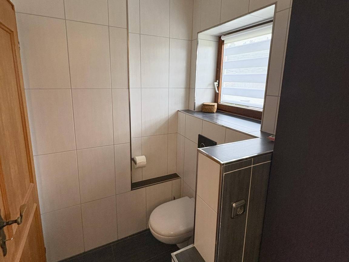 Layout : Parterre(privater Eingang): Eingang, offene Küche mit Wasserkocher, Toaster, Kochherd(4 Kochplatten, Ceranfeld), Kaffeemaschine(Filter), Backofen, Mikrowelle, Geschirrspüler, Kühlschrank(+ Gefrierfach), Zitruspresse , Wohn/Esszimmer mit TV(Flatscreen, Satellit), Esstisch, Ofen(Holz, Kachel), Sitzecke, kabelloses Musiksystem, Radio, Föhn , Schlafzimmer mit Doppelbett(180 x 200 cm) , Schlafzimmer mit Doppelbett(200 x 200 cm) , Badezimmer mit Dusche, Waschbecken, Toilette , Flur