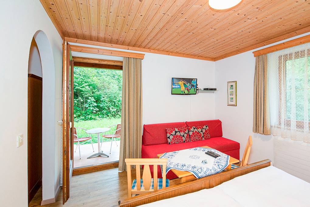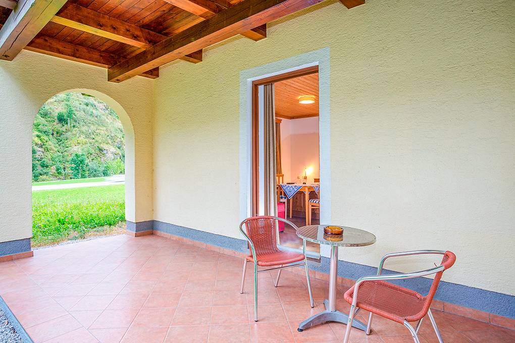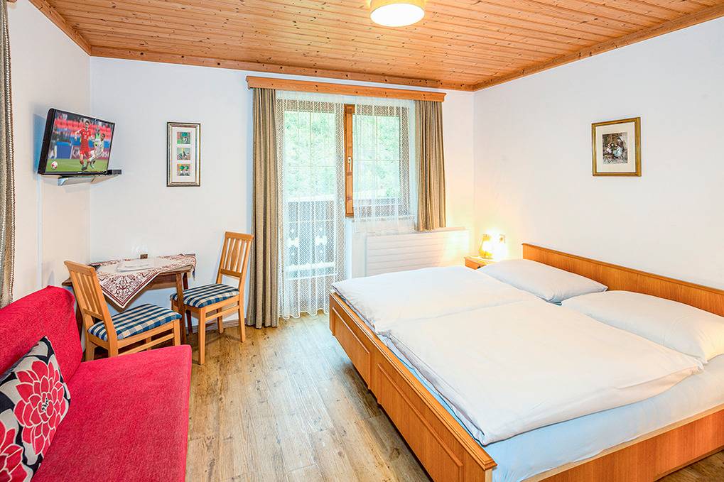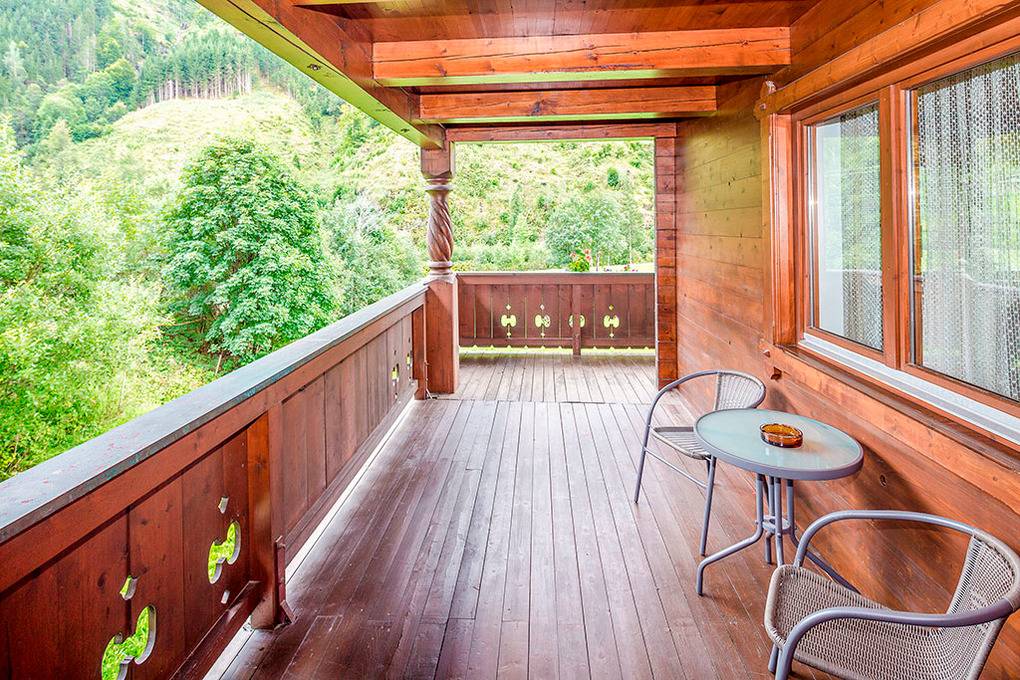 Haus: Schönes, regionstypisches bikerfreundliches Ferienhaus mit 2 Ferienwohnungen und 4 Zimmern, die zu 3 Wohneinheiten kombiniert werden können. Gemütliche, freundliche Einrichtung. 6 Schlafzimmer, davon 5 Zimmer mit eigenem Bad (Du, Wb, WC), Sat-TV. Kostenloser Internetzugang über W-Lan. Zentralheizung. Separate Wohnung im Parterre. 1 Garage mit Abspritzmöglichkeit für Fahrräder pro Wohnung. Wellnessbereich (finnische Sauna, Almkräutersauna, Ruheraum) im Partnerbetrieb in 4 km Entfernung nutzbar (Gebühr).