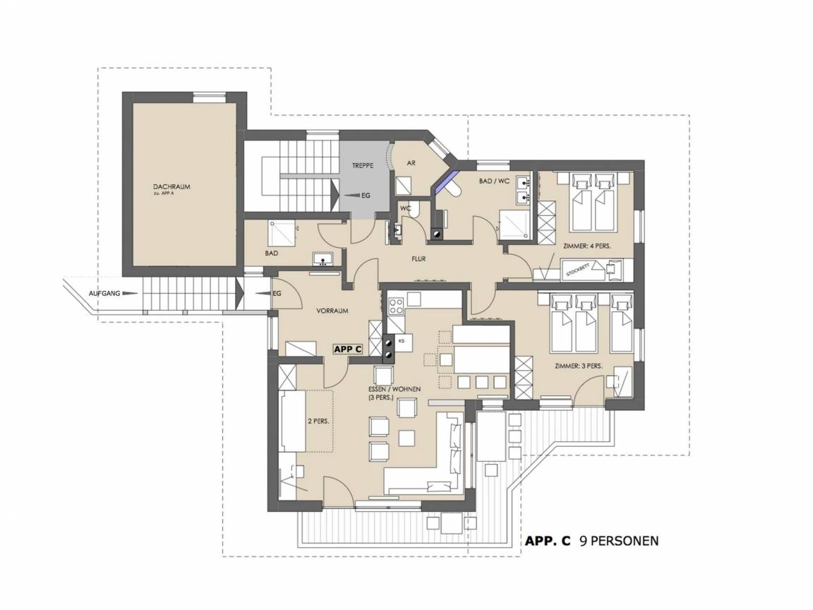 Layout : Parterre: Wohnzimmer mit Doppelschlafcouch, TV, Balkon , Wohnzimmer mit TV, Terrasse , Küche mit Wasserkocher, Kochherd(Ceranfeld), Kaffeemaschine, Backofen, Mikrowelle, Geschirrspüler, Kühlschrank , offene Küche mit Kochherd(Ceranfeld), Backofen, Mikrowelle, Geschirrspüler, Kühlschrank , Schlafzimmer mit 2x Einzelbett, TV, Balkon , Schlafzimmer mit 2x Einzelbett, Etagenbett, TV , Schlafzimmer mit 2x Einzelbett, TV , Schlafzimmer mit 2x Einzelbett, TV , Schlafzimmer mit 2x Einzelbett, TV , Schlafzimmer mit Badezimmer mit 2x Einzelbett, Etagenbett, TV, Dusche, Waschbecken, Toilette , Badezimmer mit Dusche, Waschbecken , Badezimmer mit Dusche, 2x Waschbecken, Toilette , Badezimmer mit Dusche, 2x Waschbecken, Toilette , Toilette, Toilette