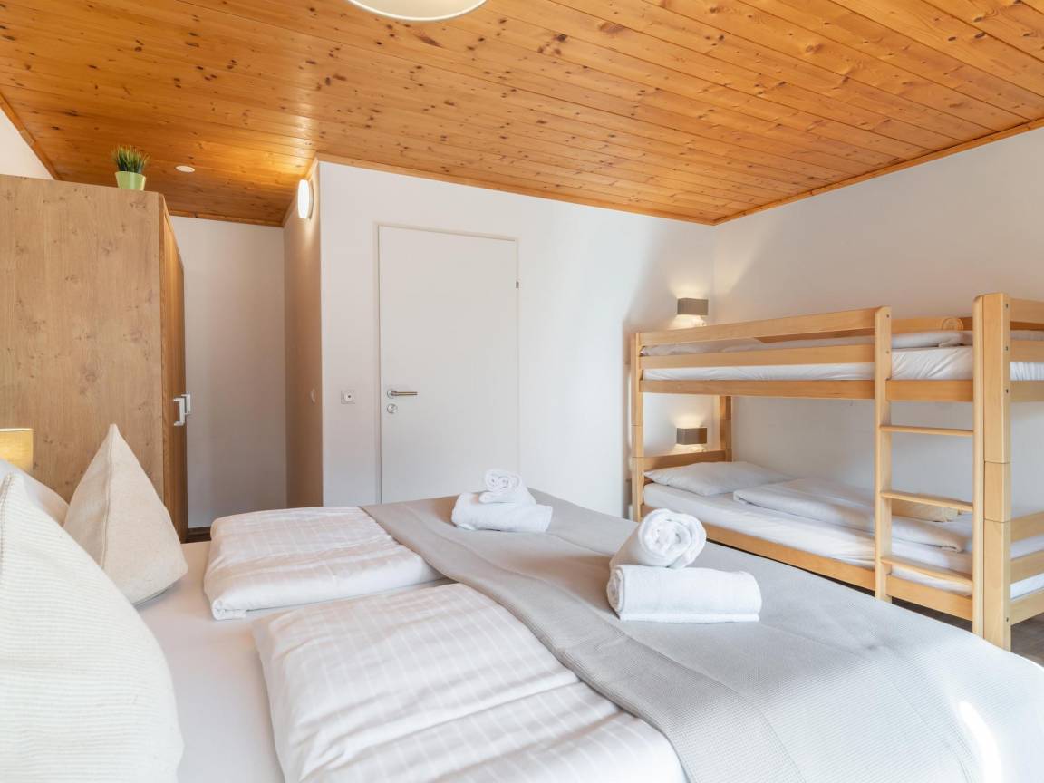 Zwischengeschoss: Schlafzimmer mit Badezimmer mit 4x Einzelbett, TV, Dusche, Waschbecken, Toilette