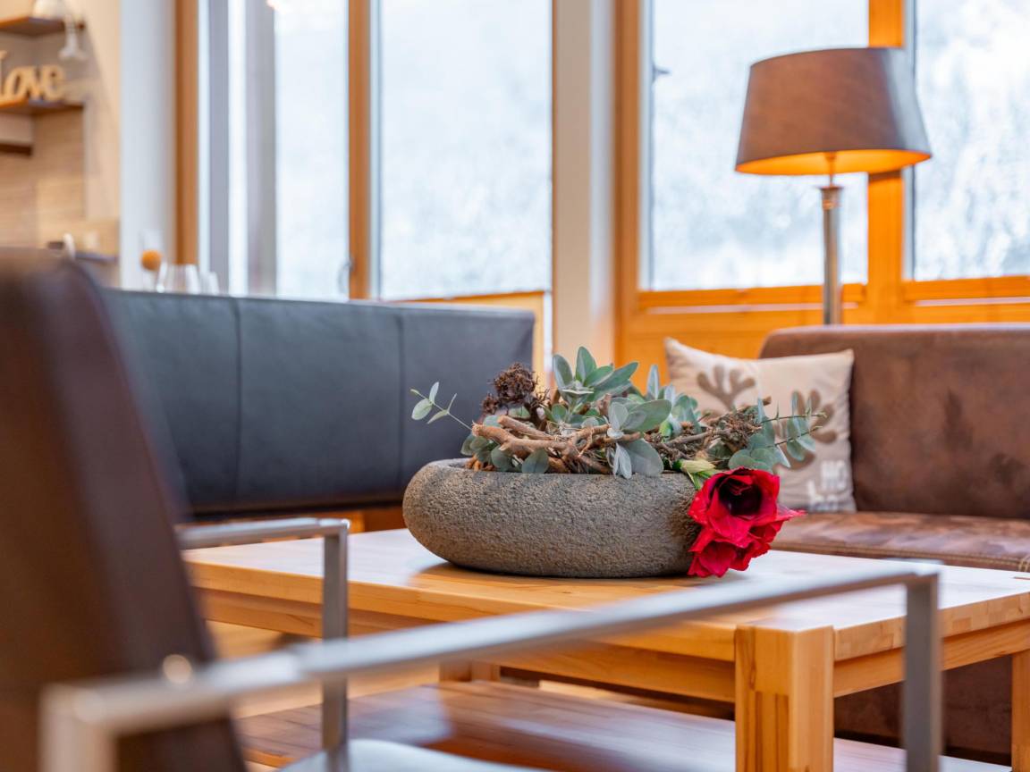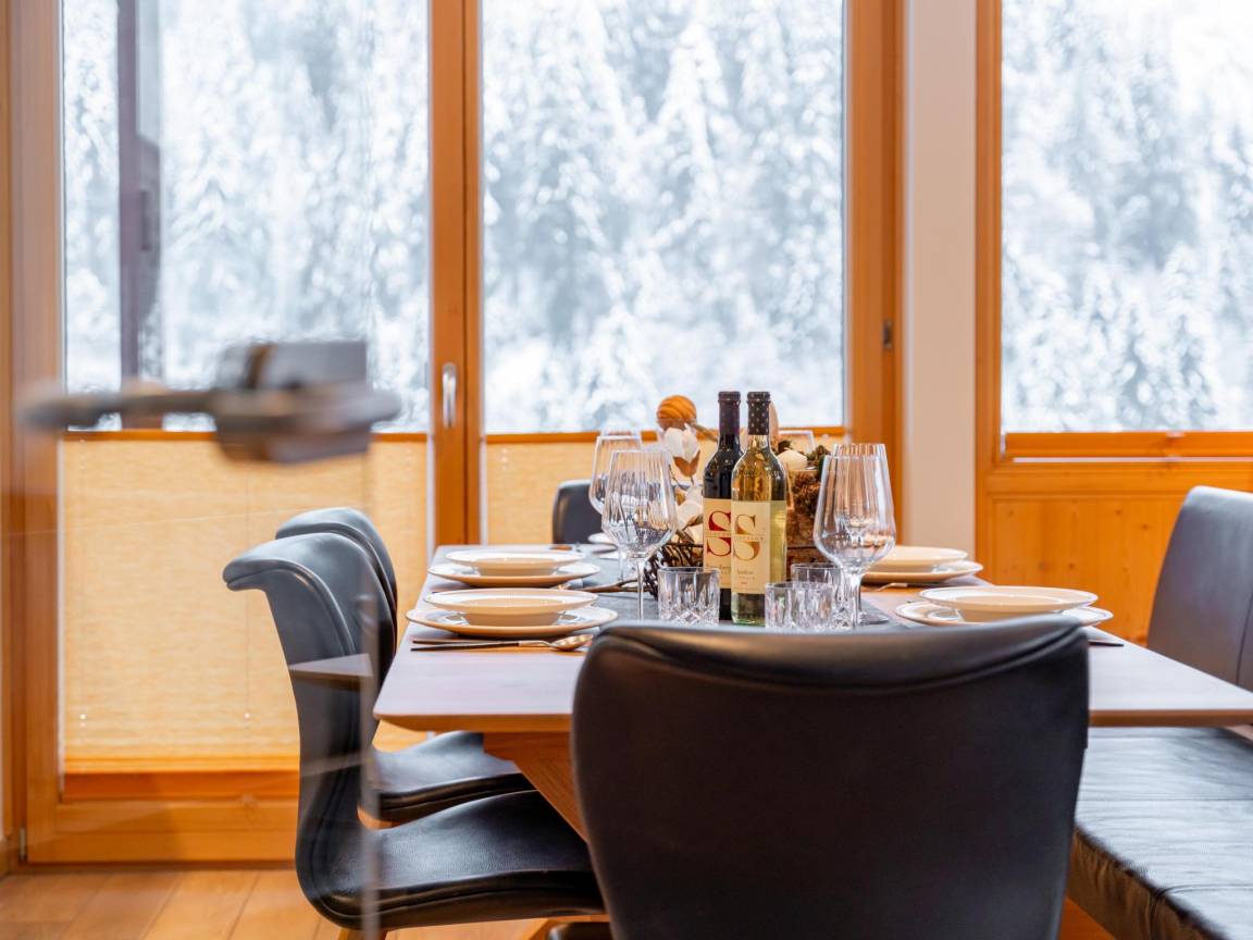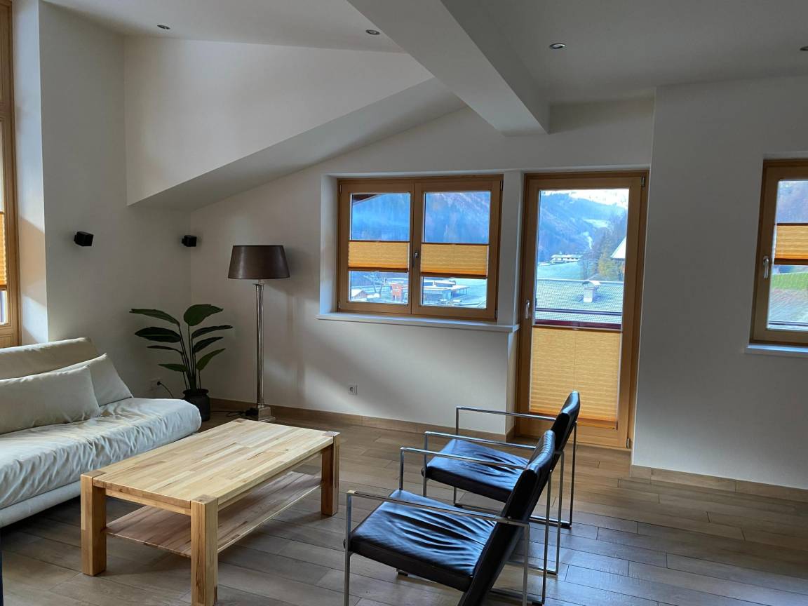 Hausbeschreibung : Schönes Penthouse mit großem überdachtem Balkon rund um das Haus, so dass Sie die Sonne und die Aussicht vom frühen Morgen bis spät in die Nacht genießen können. Die Skiausrüstung kann im Abstellraum mit Skischuhwärmer gelagert werden und in der Küche können Sie Ihre Lieblingsgerichte zubereiten. Bitte beachten Sie, dass sich ein Schlafzimmer mit Bad im ersten Stock befindet. Drei Privatparkplätze stehen Ihnen zur Verfügung. Fantastisch!