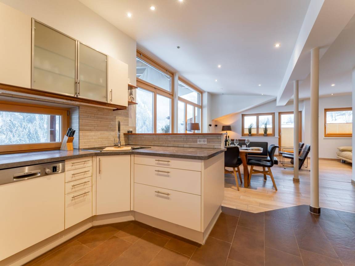 Hausbeschreibung : Schönes Penthouse mit großem überdachtem Balkon rund um das Haus, so dass Sie die Sonne und die Aussicht vom frühen Morgen bis spät in die Nacht genießen können. Die Skiausrüstung kann im Abstellraum mit Skischuhwärmer gelagert werden und in der Küche können Sie Ihre Lieblingsgerichte zubereiten. Das Penthouse ist mit dem Aufzug erreichbar. Genießen Sie im Sommer die Sonne auf dem Balkon mit einem schönen Getränk. Zwei private Parkplätze stehen zu Ihrer Verfügung