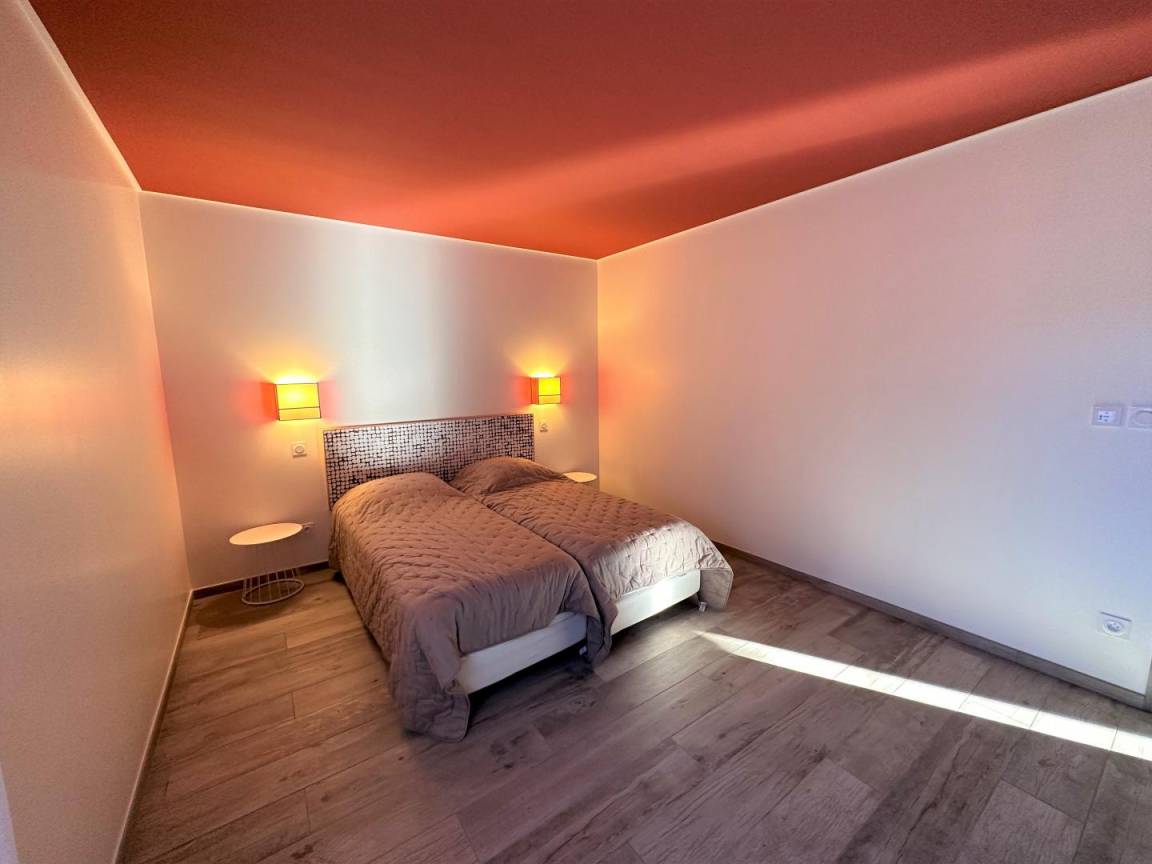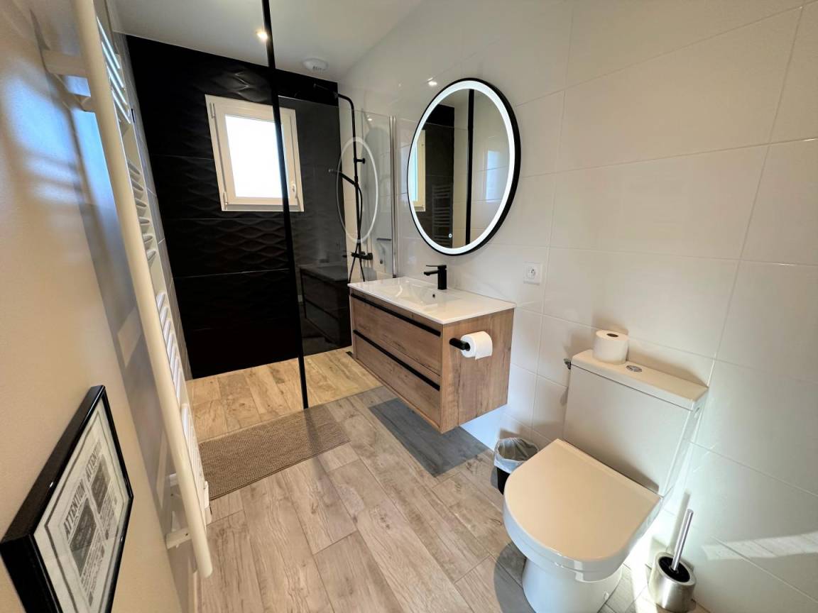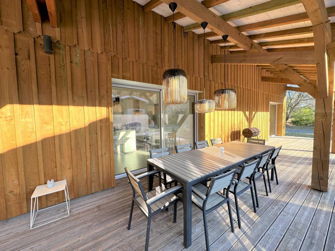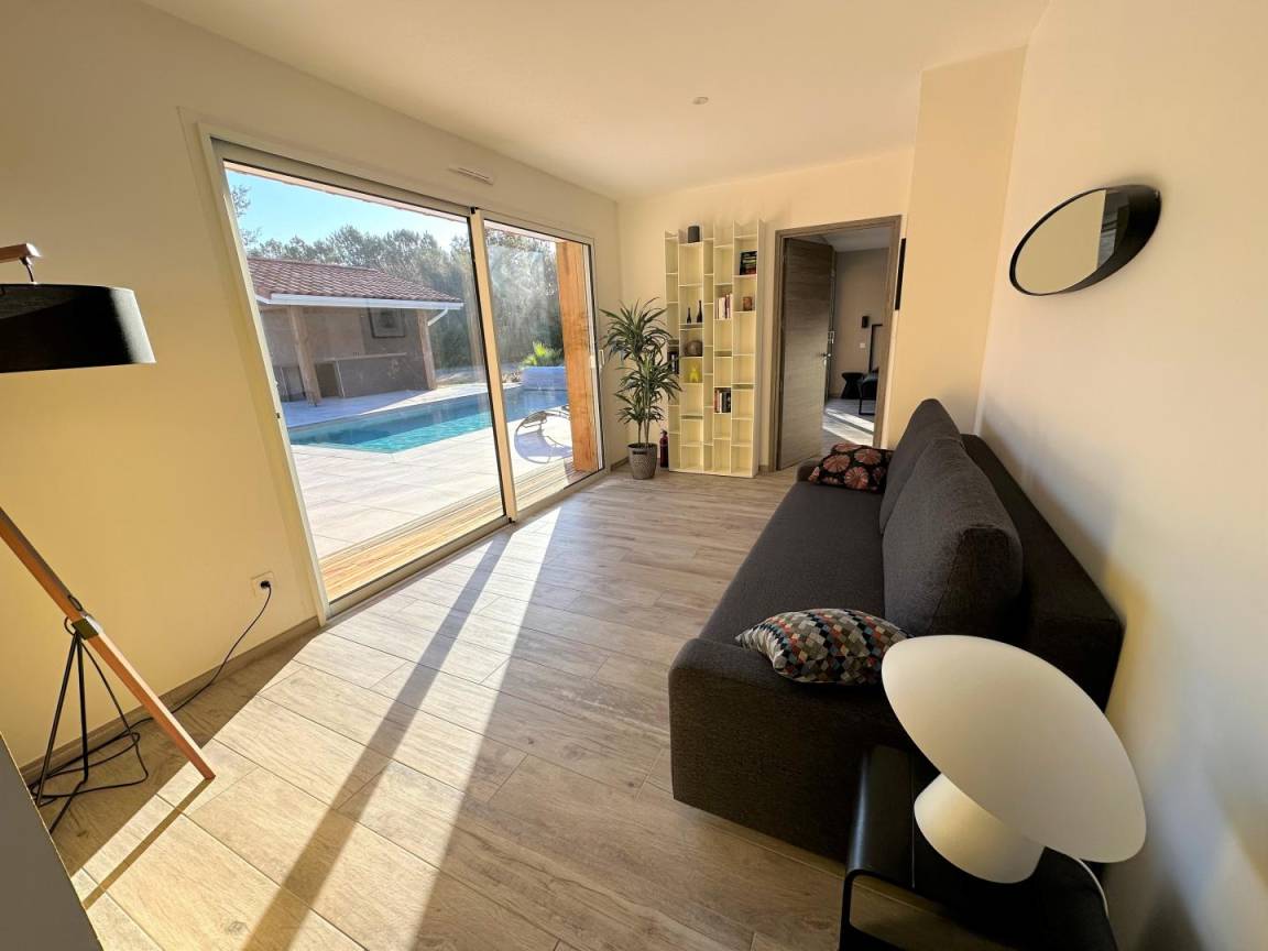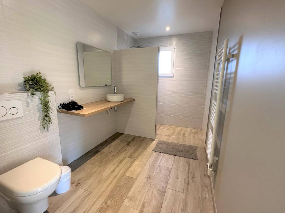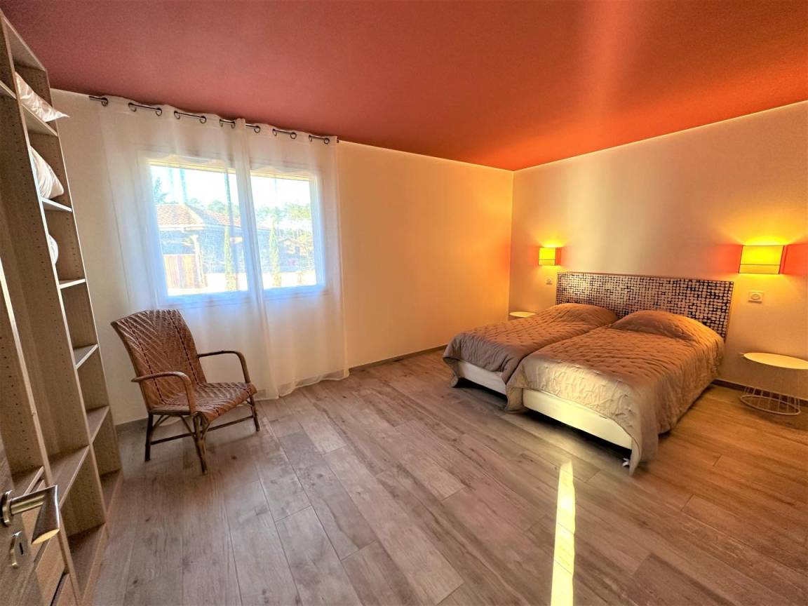 „Une maison d'un rare confort. Nous y avons passé le nouvel an entre amis. Le fait que chaque couple puisse avoir sa chambre et sa salle de bain est un énorme avantage. Soigneusement décorée et qui offre un très grand espace extérieur avec terrain de pétanque. Idéalement située à 3km des plages. Nous avons déjà en tête et hâte de revenir durant un été pour profiter de la piscine. L'accueil était irréprochable. Absolument aucun point négatif !“