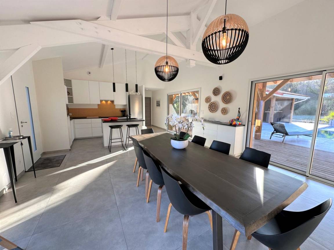 Diese moderne Holzvilla wird Sie mit ihren schönen Volumen, ihrer Helligkeit, der Qualität ihrer Materialien und ihren 4 Schlafzimmern, darunter 3 Master-Suiten, verführen und Ihnen die Privatsphäre und den Komfort bieten, die Sie für Ihren Aufenthalt in einer kleinen Gruppe benötigen. Eine unverzichtbare Adresse an der Küste der Landes für einen Aufenthalt bei einem Stamm. Zu jeder Jahreszeit zu entdecken.