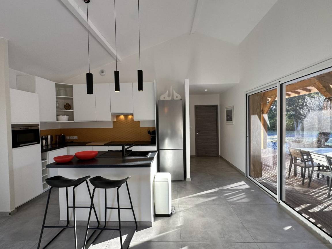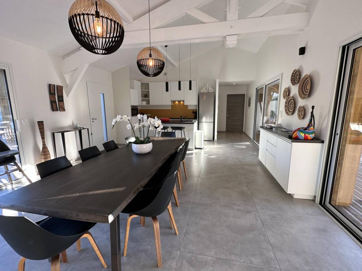 „Très belle maison, décorée avec goût et bien équipée. Près des plages et de l'étang de Léon. Piscine privative bien agréable (mais pas chauffée). De nombreuses pistes cyclables à proximité. Une superbe semaine en famille. On recommande !“