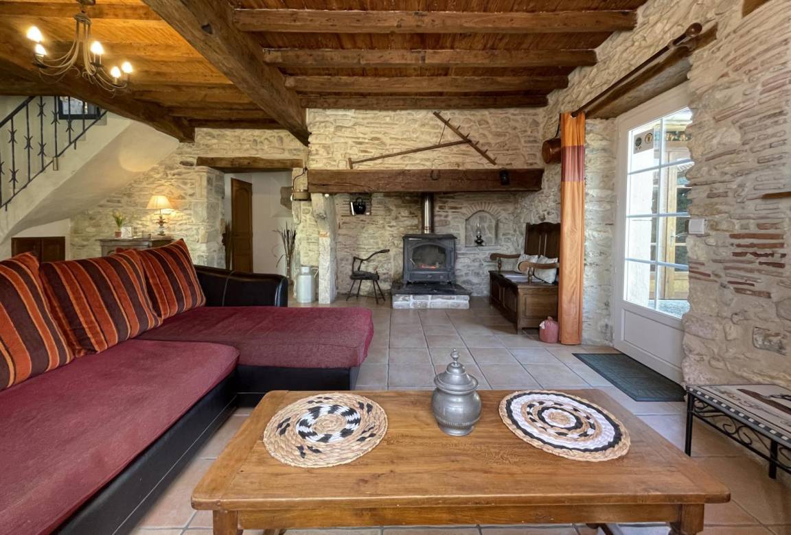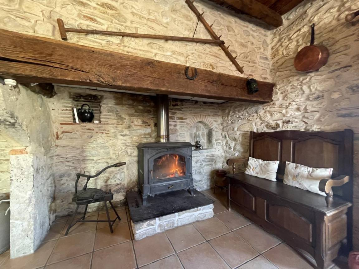 - Wohnzimmer (SFR-Internetbox, Kamin/Holzofen, Fernseher).