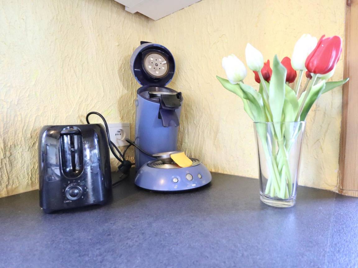 Layout : Parterre: Esszimmer mit Esstisch , offene Küche mit Esstisch, Wasserkocher, Toaster, Kochherd(5 Kochplatten, elektrisch), Dunstabzugshaube, Kaffeemaschine(Filter, pads), Backofen, Mikrowelle, Geschirrspüler, Kühlschrank, Tiefkühlschrank , Schlafzimmer mit Doppelbett , Schlafzimmer mit Einzelbett, Einzelbett , Badezimmer mit Dusche, Waschbecken, Toilette