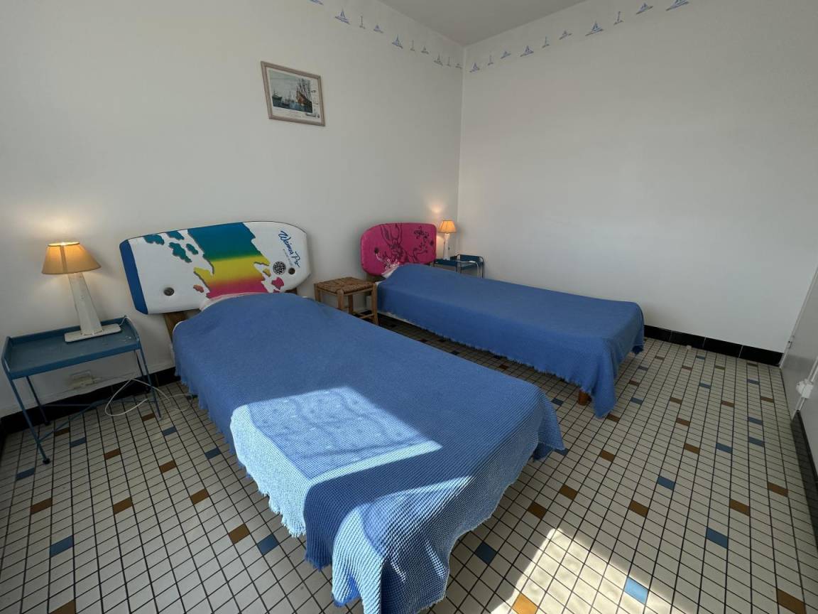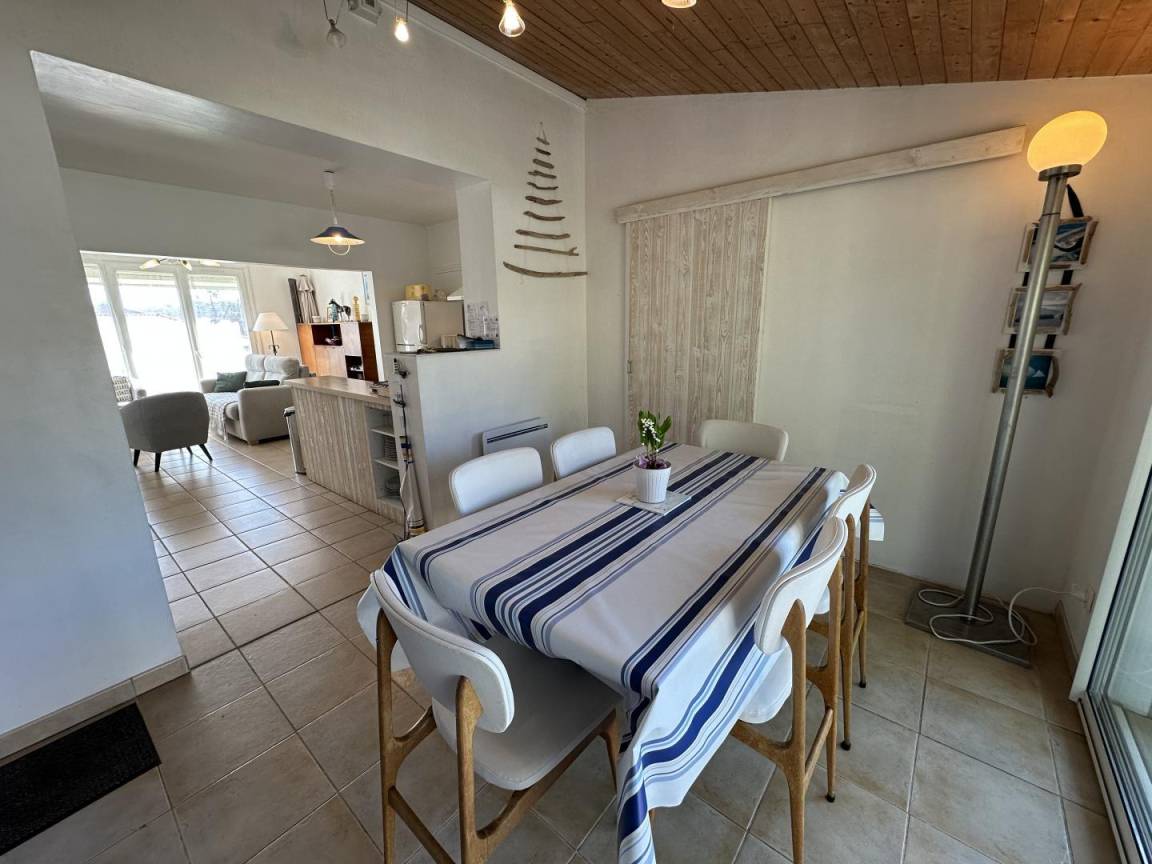 Dieses Ferienhaus befindet sich in einer ruhigen Gegend, 300 m vom Strand entfernt. Es befindet sich im Obergeschoss und grenzt an ein Ferienhaus im Erdgeschoss.