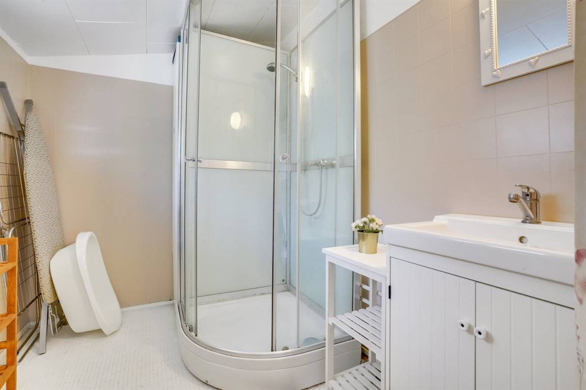 Es gibt 1 Badezimmer mit Dusche und 1 Toilette Es steht eine Sauna zur Verfügung in der Sie sich so richtig entspannen können.