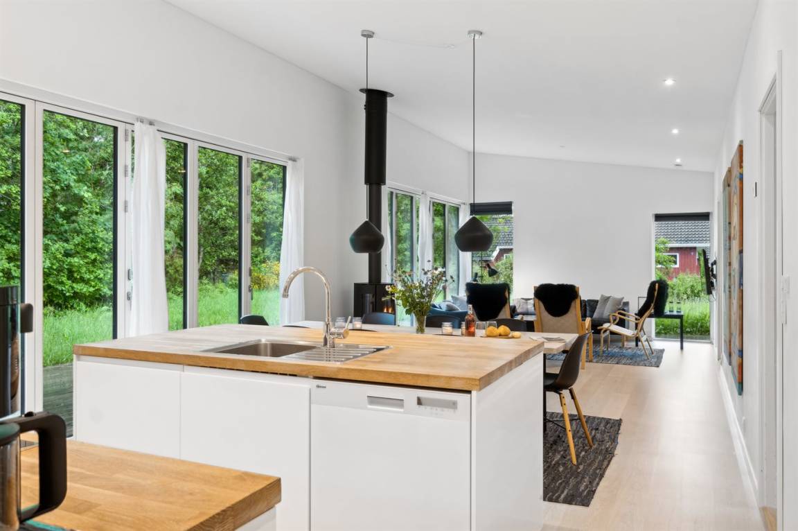 Das Haus ist hell und luftig mit viel Tageslicht durch die großen Fensterfronten und mit Decken bis zum First in allen Räumen. Überall im Haus wurde auf hohe Qualität geachtet, und die Einrichtung ist modern. Hier gibt es Komfort und Luxus, und überall ist das Haus gemütlich, angenehm und bequem.