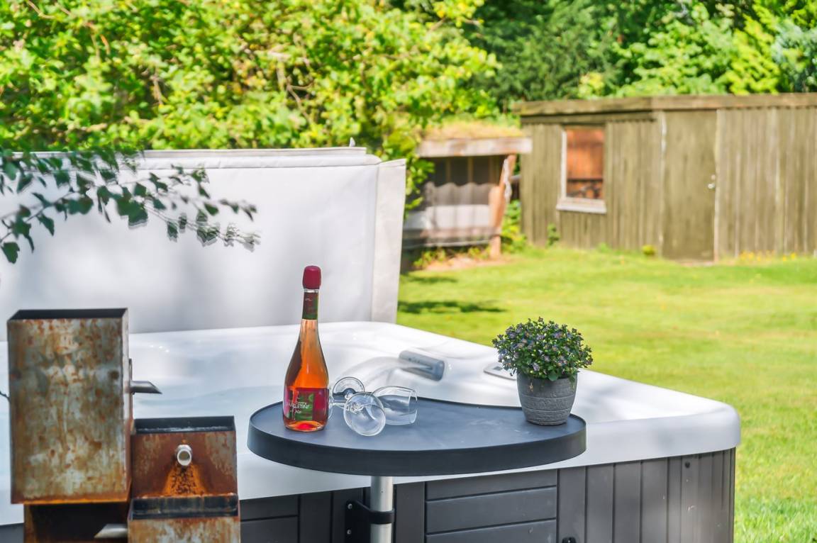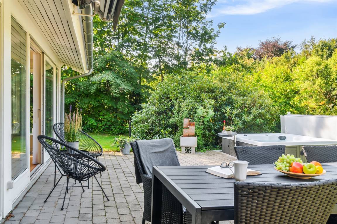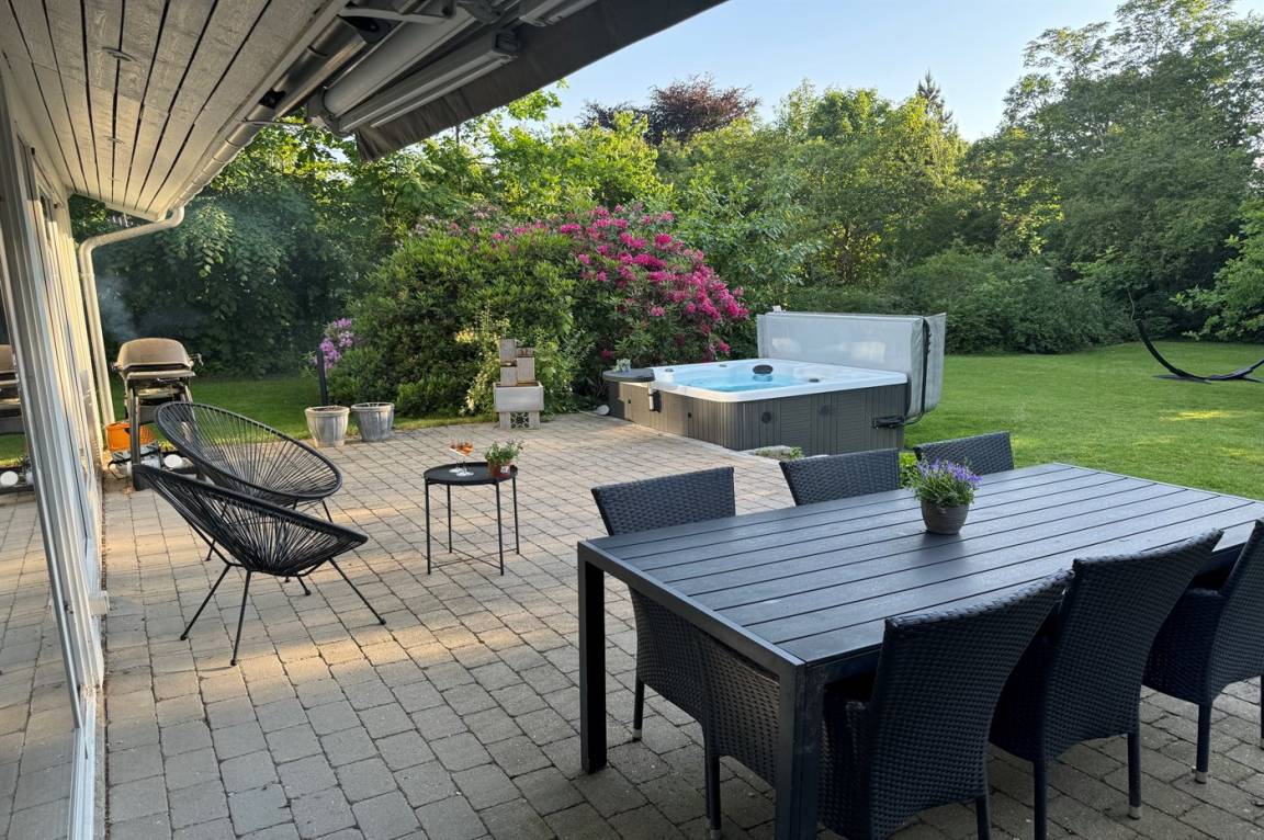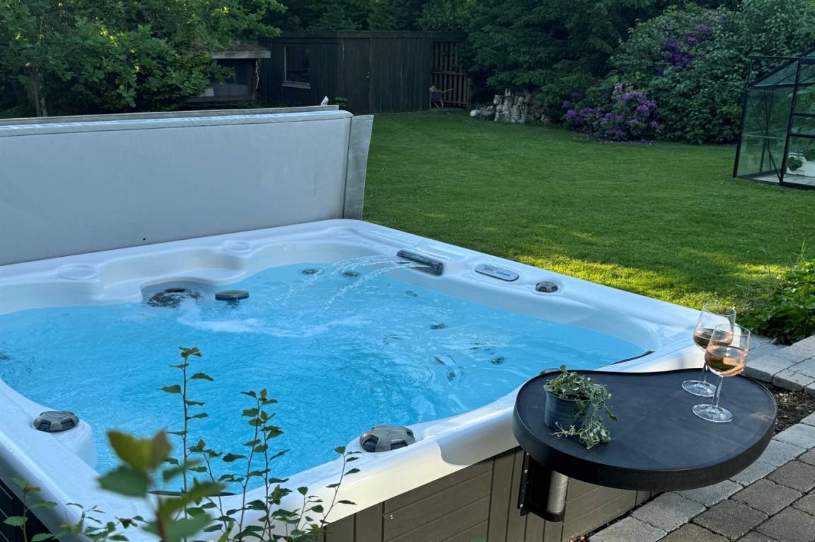 Ein besonders gemütliches Ferienhaus mit einem 6-Personen-Außen-Whirlpool (Standwasser). Vom schönen Wohn-Essbereich des Hauses aus hast du direkten Zugang zur Terrasse mit Blick auf den beheizten Außen-Whirlpool und den gemütlichen Garten mit vielen vor dem Wind geschützten Ecken und viel Platz. Der Whirlpool kann das ganze Jahr über genutzt werden – hier kannst du die Sonne genießen, den sternenklaren Himmel betrachten und dich an kühlen Tagen im warmen Wasser entspannen. Gartenmöbel und ein Grill sind ebenfalls vorhanden.