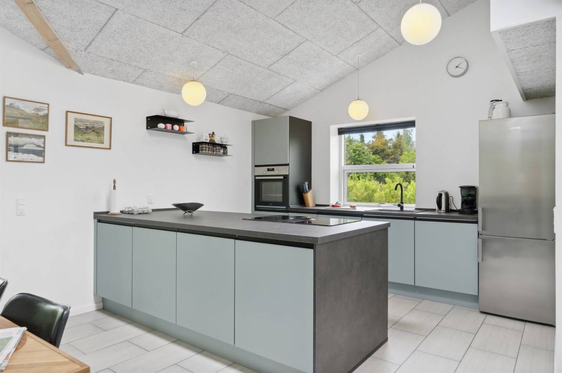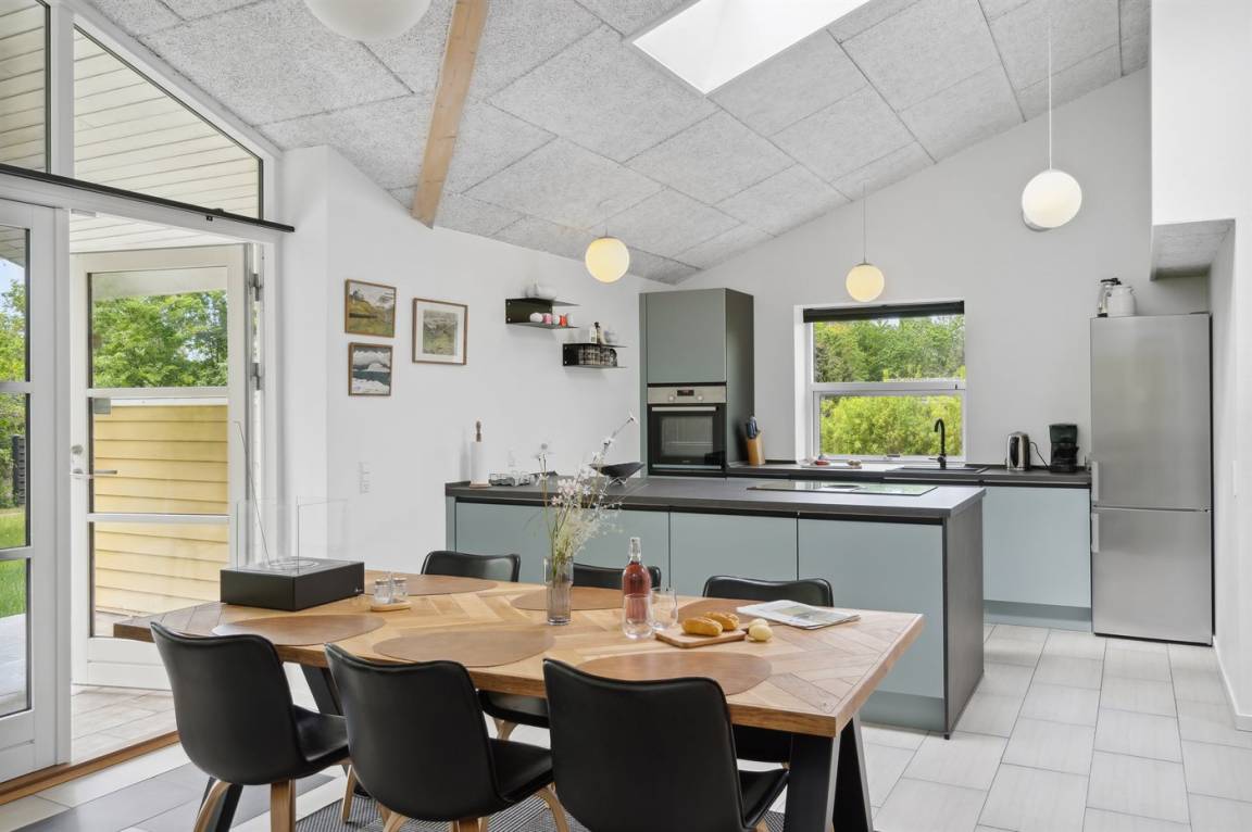 Das Haus hat 4 Zimmer mit je 2 Schlafplätzen und 2 Badezimmer mit Fußbodenheizung und Duschnische. Ein Badezimmer hat zudem eine Sauna. Die große Wohnküche, die direkt an das Wohnzimmer angrenzt, bietet gute Möglichkeiten für schöne, gemeinsame Stunden.