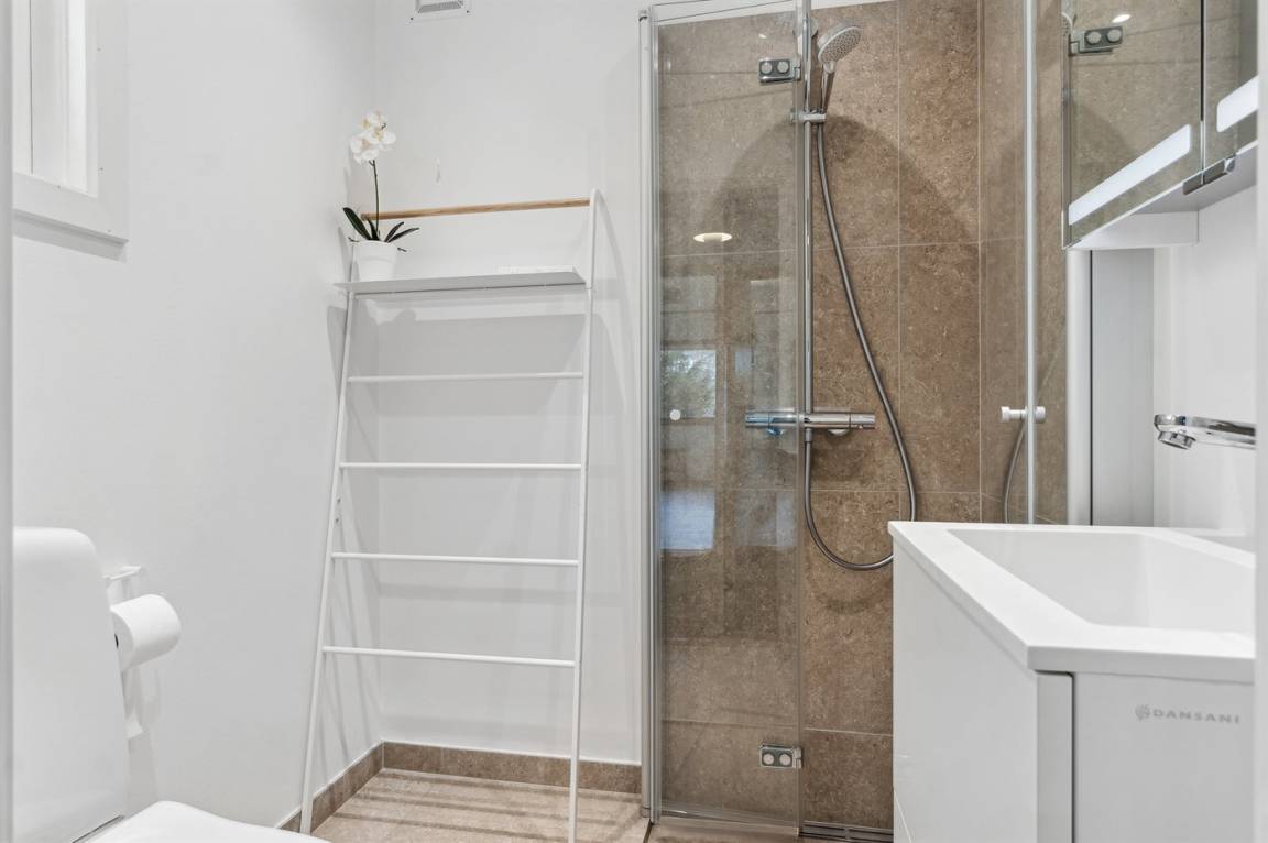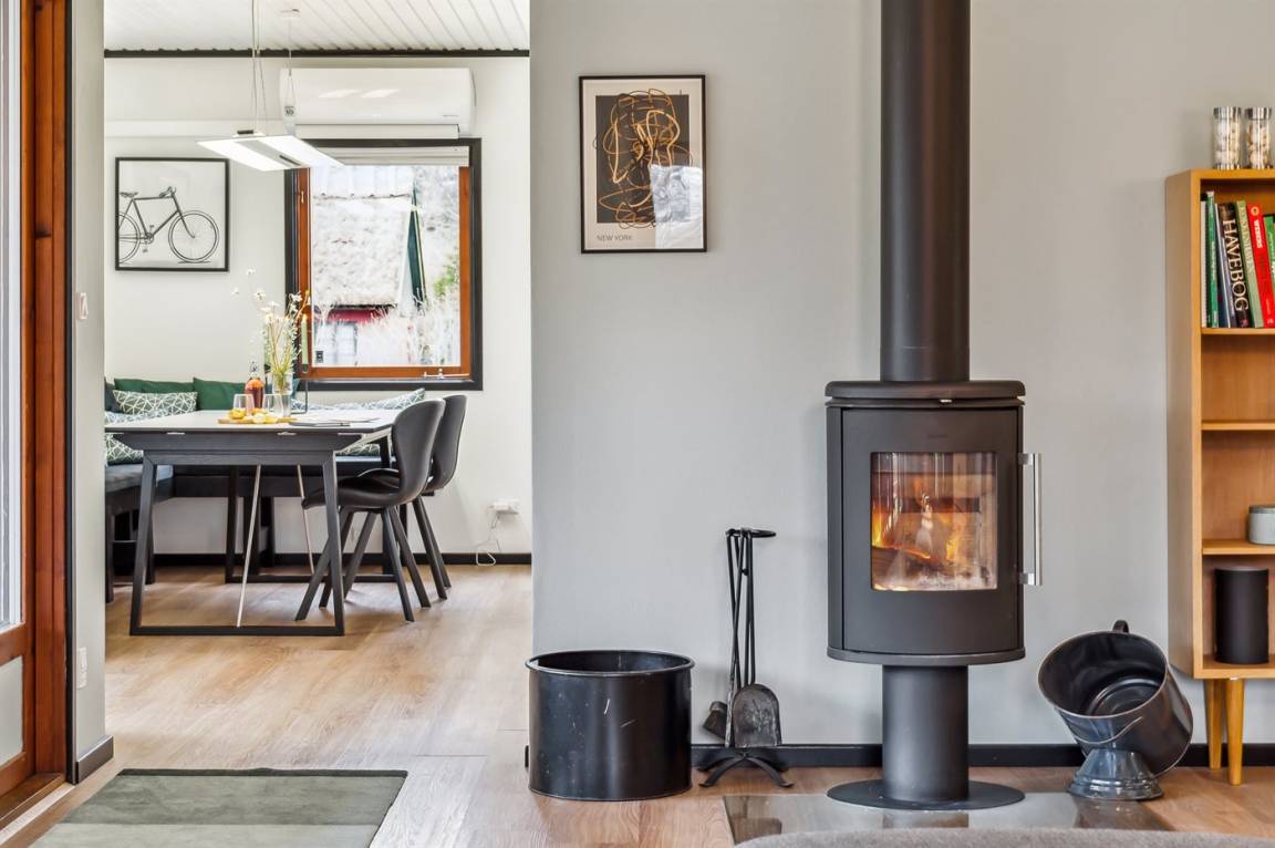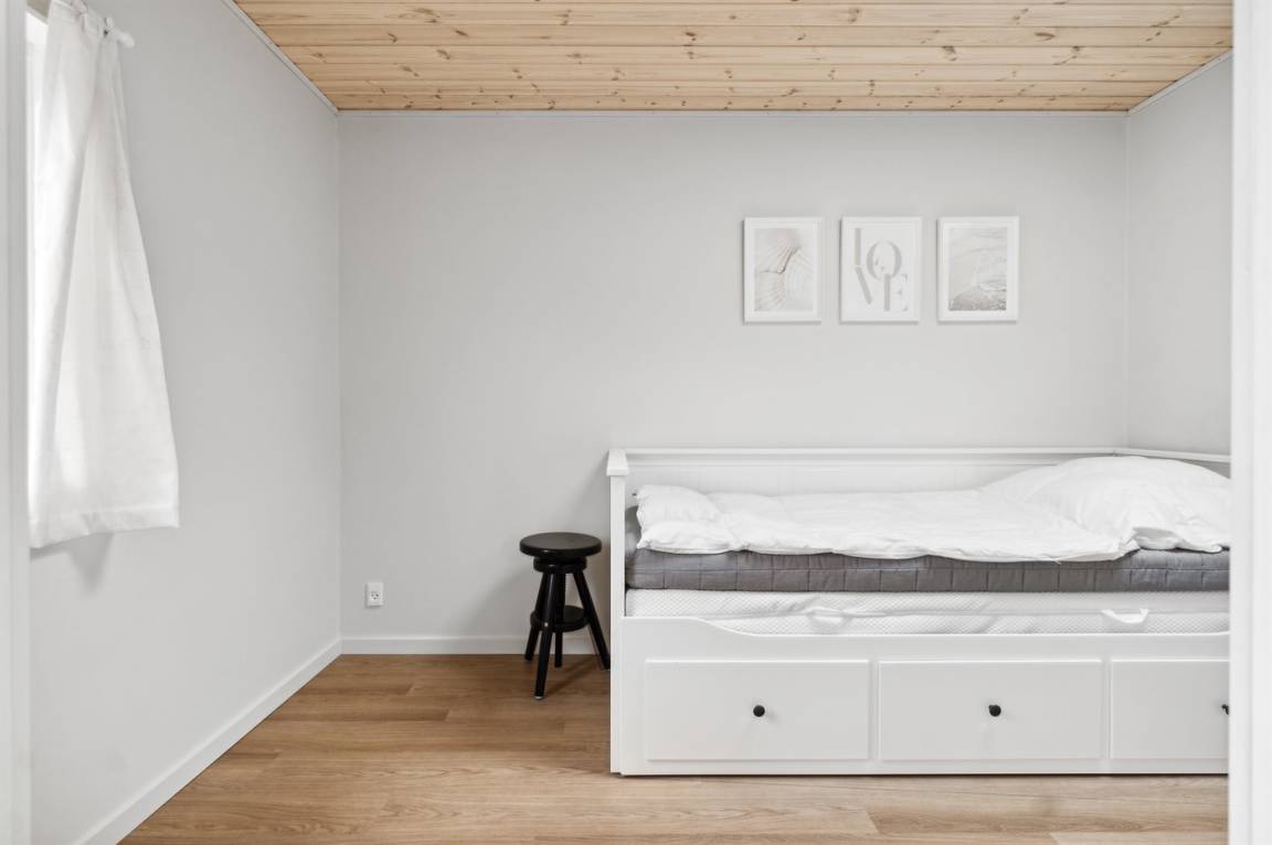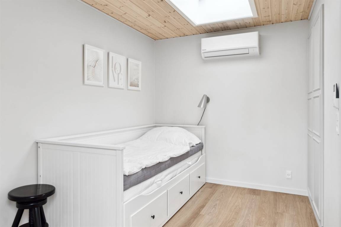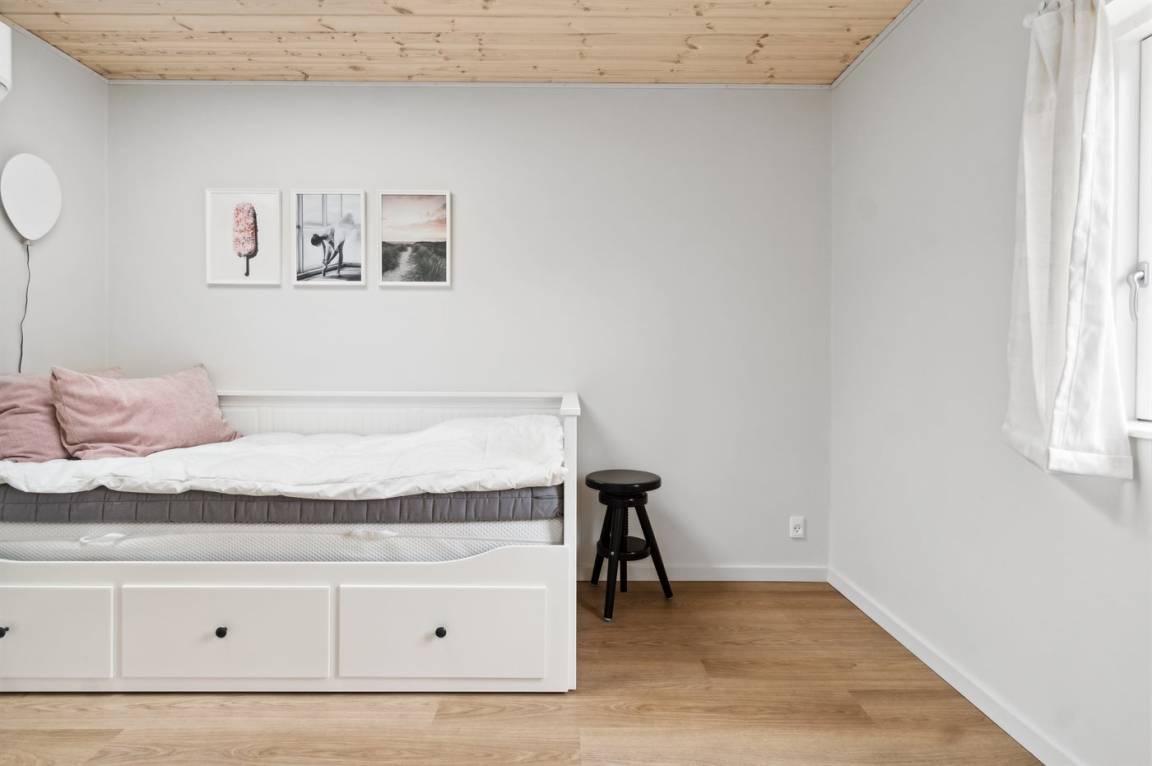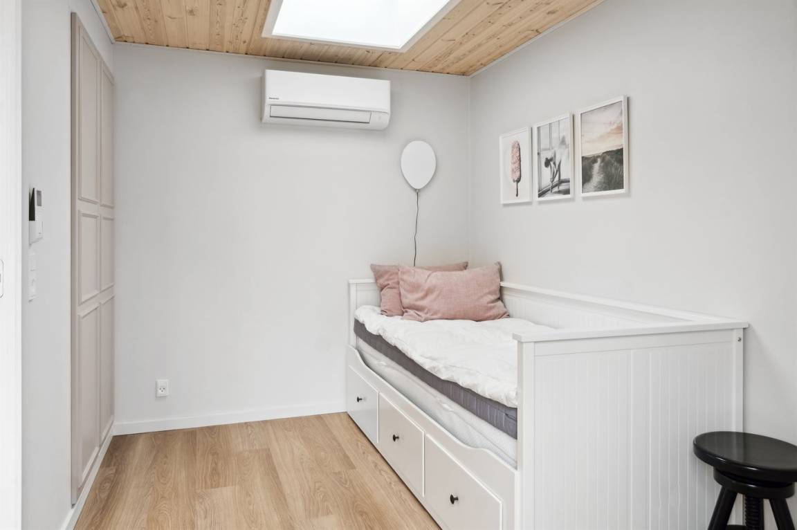 Das Haus befindet sich auf einem großen Grundstück mit Spielgeräten für die Kinder und bietet die Möglichkeit zum Spielen auf der großen Rasenfläche. Die moderne Küche in Verbindung mit Essbereich und Wohnzimmer ist der Mittelpunkt des Hauses. Vom Wohnzimmer aus gelangt man auf eine gute, überdachte Terrasse. Es gibt 2 Schlafzimmer im Haus, eins mit einem Doppelbett und eins mit einem Einzelbett (am besten für Kinder geeignet). Das moderne Badezimmer von 2023 verfügt über Fußbodenheizung und eine Dusche. Das Haus wird energieeffizient mit einer Luft-Luft-Wärmepumpe beheizt, und für gemütliche Stunden gibt es einen Holzofen. Das angrenzende Gästehaus wurde 2023 erbaut und liegt weniger als 10 Meter vom Hauptgebäude entfernt. Hier gibt es 2 Schlafzimmer, jedes mit 2 Schlafplätzen. Jedes Zimmer ist mit einer eigenen Luft-Luft-Wärmepumpe ausgestattet.