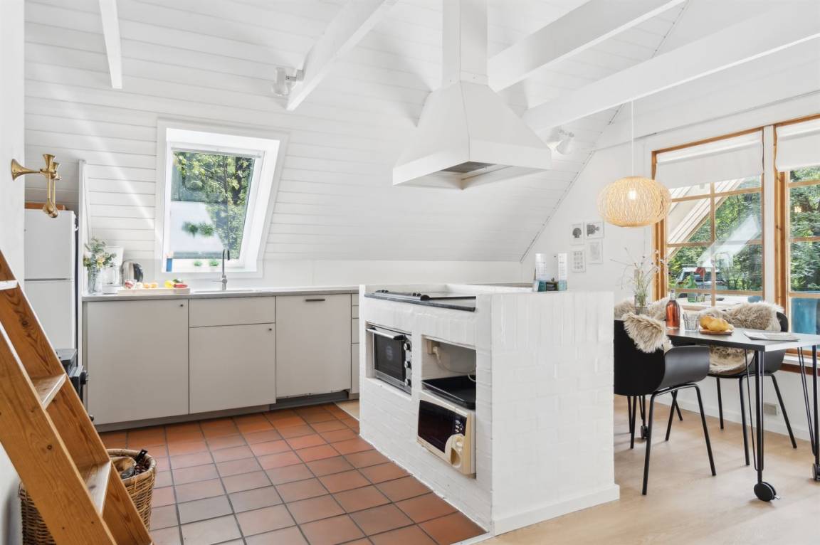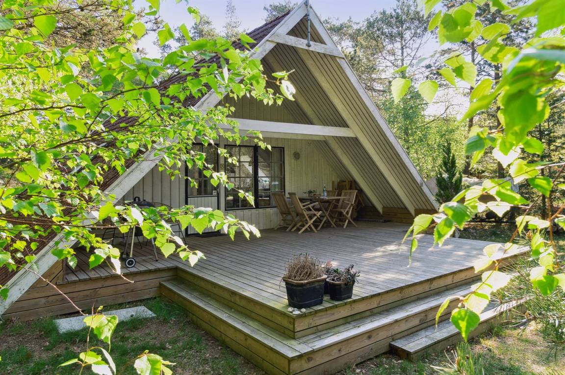 Ein gemütliches, kleines Sommerhaus im A-Haus-Stil mit offenem Küchenbereich. Das Haus wurde 2024 teilweise modernisiert und liegt auf einem schönen, Grundstück in ruhiger Umgebung. Zum Haus gehört eine wirklich gemütliche, überdachte Terrasse, auf der man viele Stunden im Freien genießen kann.
