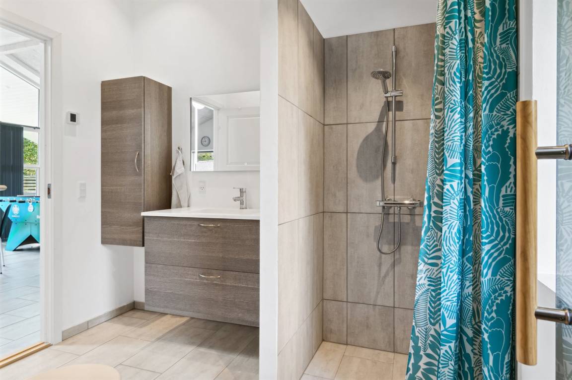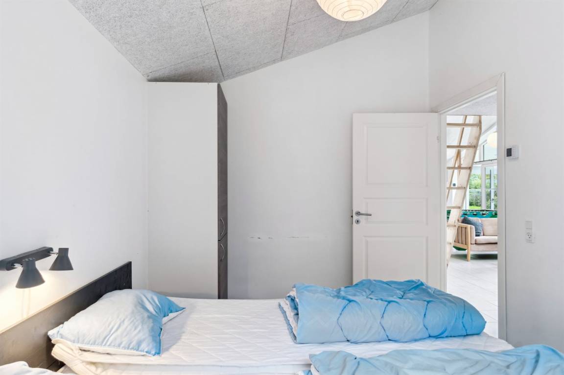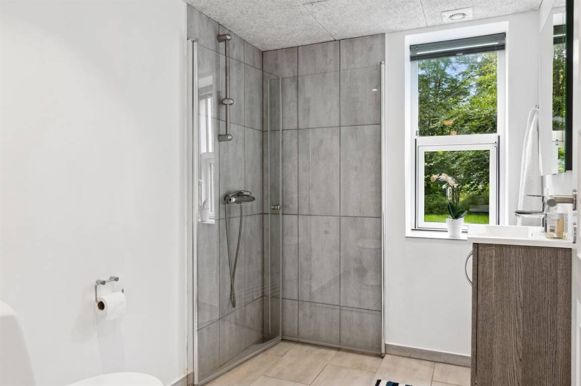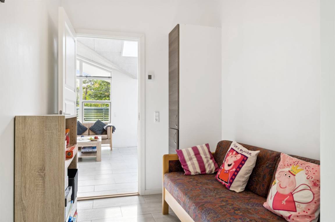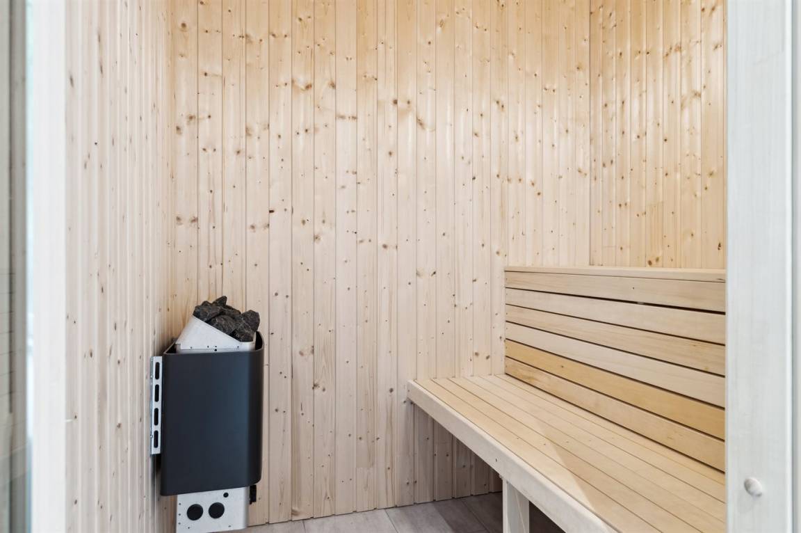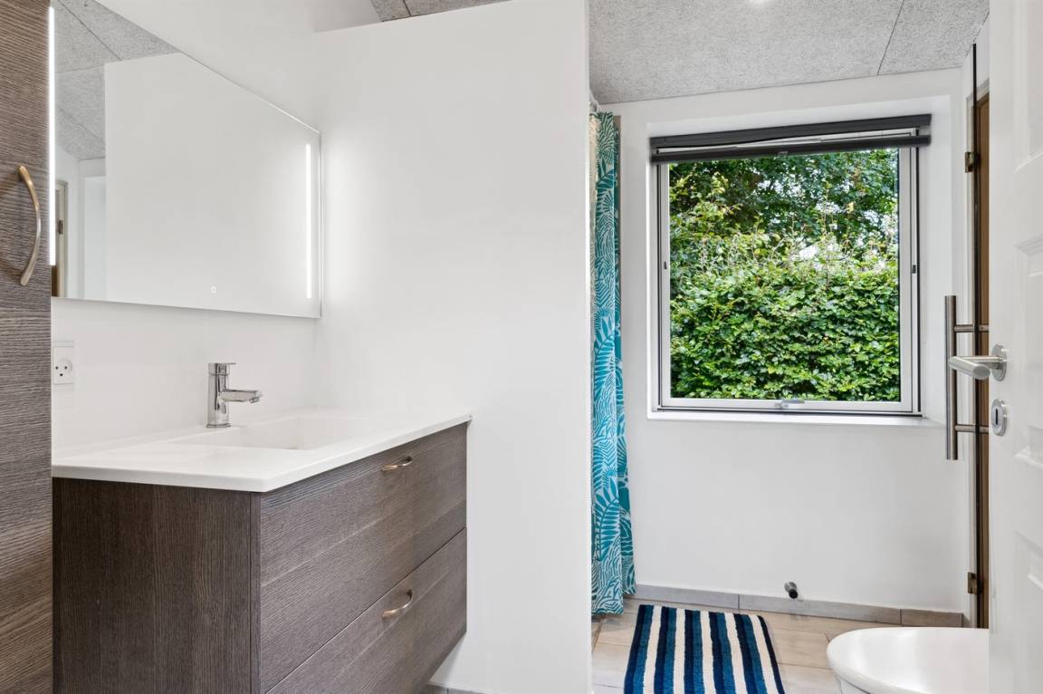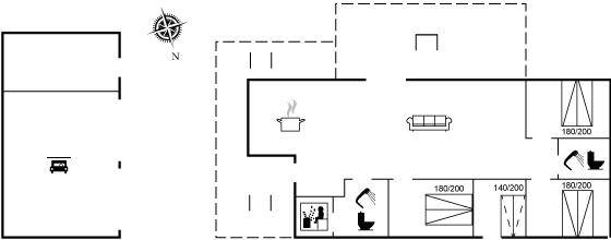 Dieses moderne Ferienhaus mit insgesamt 120 Quadratmetern und Schlafplätzen für 10 Gäste bietet viel Platz im großen Gemeinschaftsbereich mit Küche, Essbereich und Wohnzimmer in einem offenen Raum. Es gibt eine energieeffiziente Luft-Wasser-Wärmepumpe, die für Fußbodenheizung und hohen Komfort im gesamten Haus sorgen. In allen Räumen gibt es bis auf eines Badezimmer hohe Decken. Die hohe Deckenhöhe zusammen mit den großen Fensterfronten sorgen für viel Licht und Luft im Haus. Es gibt 4 Schlafzimmer, jedes mit 2 Schlafplätzen, und zusätzlich gibt es 2 Schlafplätze auf dem Hems, wo das Dachfenster für natürliches Licht sorgt. Es gibt 2 Badezimmer mit Fußbodenheizung und Duschnische, und in einem davon gibt es auch eine Sauna. Außerdem gibt es eine Waschmaschine.