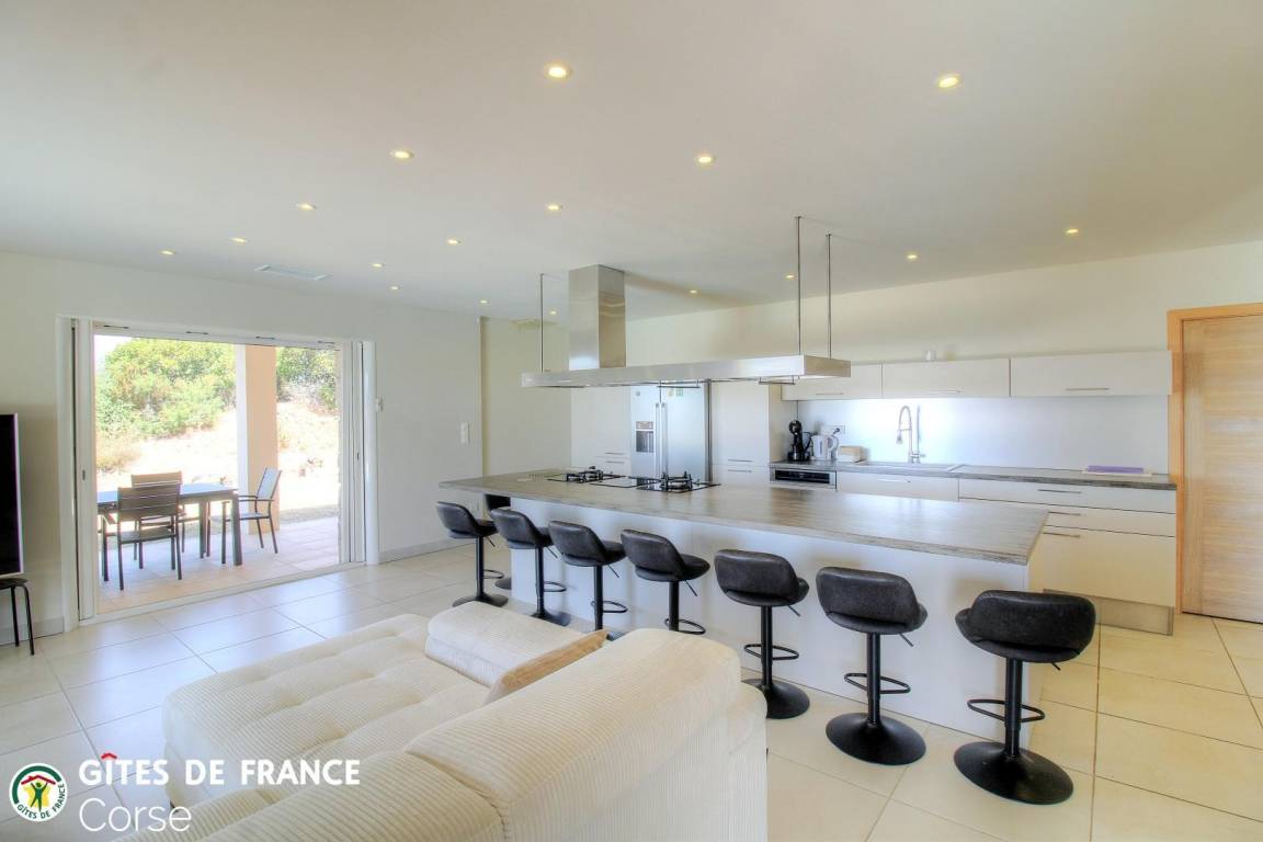 Auf einem 1717 m² großen Grundstück direkt am Meer gelegenes, freistehendes Haus mit 150 m² Wohnfläche. Es besteht aus: