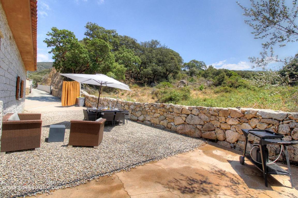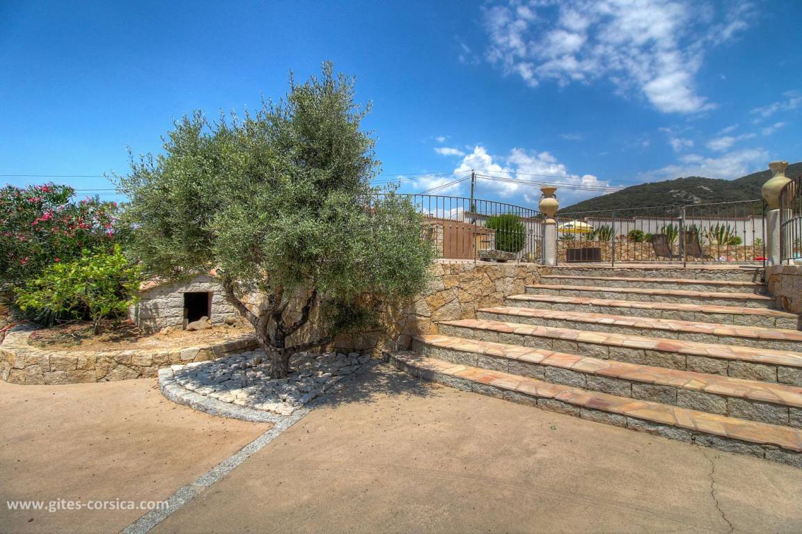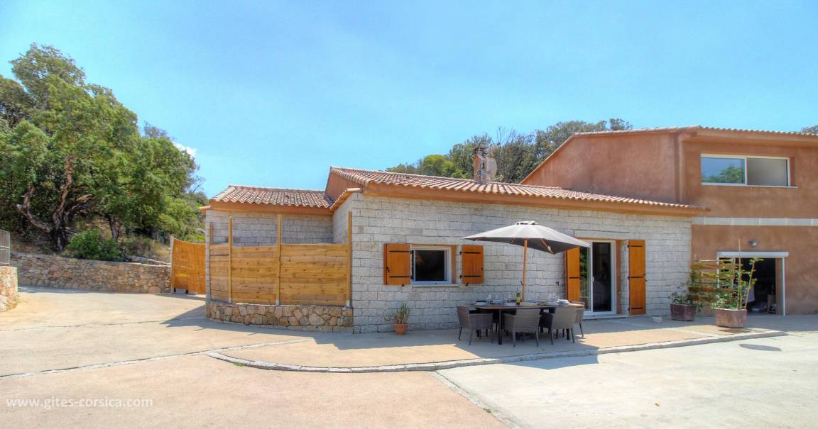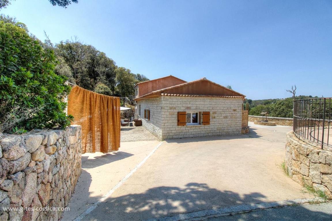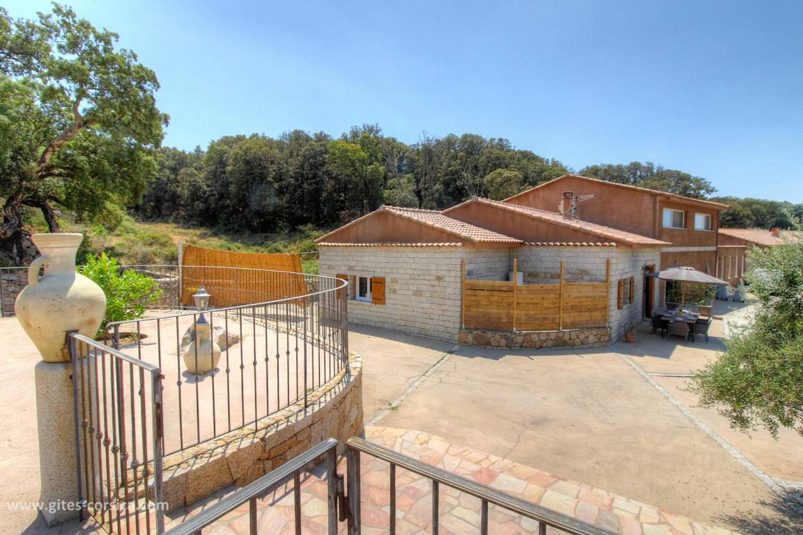 Auf den Höhen von Propriano, Ferienhaus von 113 m², an das Haus der Eigentümer durch ein leerstehendes Lokal angrenzend, auf einem Grundstück von 3800 m², das auch eine andere Vermietung umfasst. Es setzt sich wie folgt zusammen: