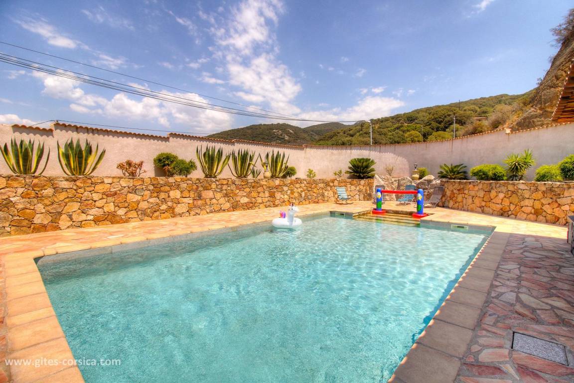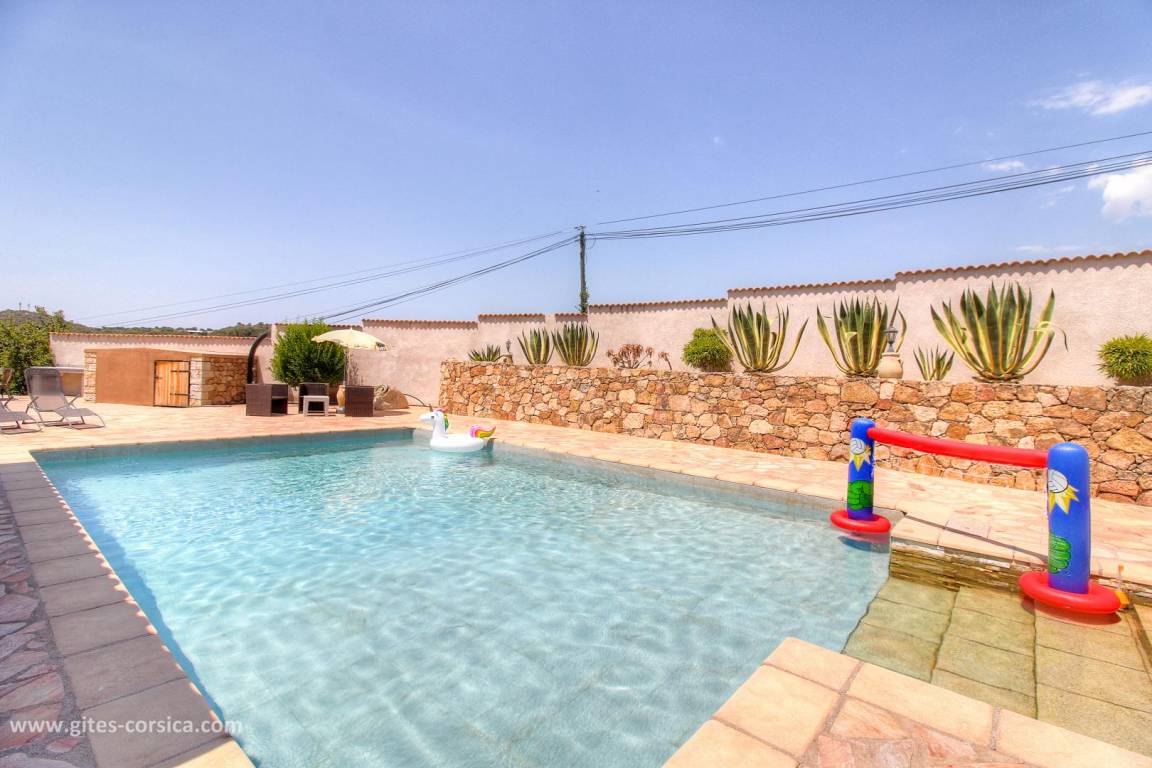 - Pool (9x6 Meter, Tiefe 0,8 bis 1,5 Meter) zur privaten Nutzung (Nutzung durch die Eigentümer nur in Abwesenheit der Feriengäste möglich), von Ende März bis Ende November von 9 bis 22 Uhr geöffnet, durch ein Tor gesichert. Der Pool darf ausschließlich von den Mietern genutzt werden.
