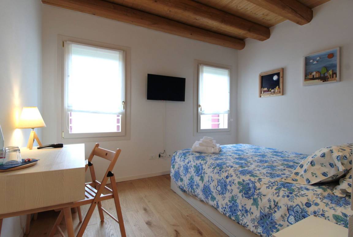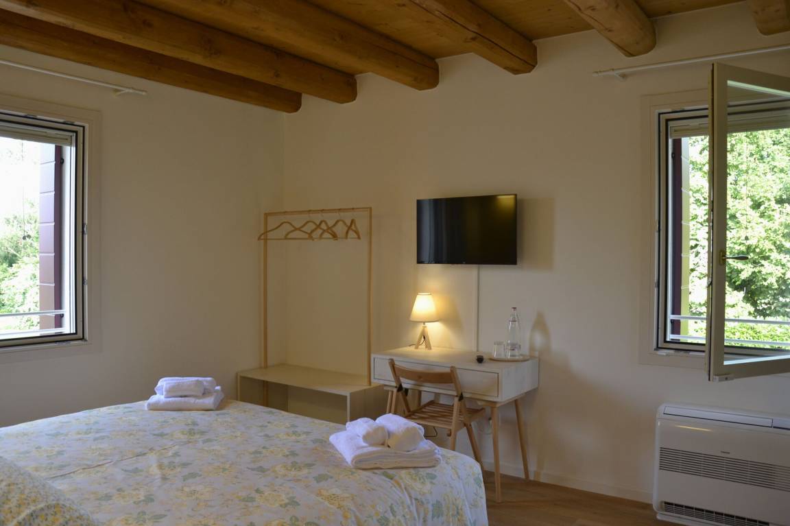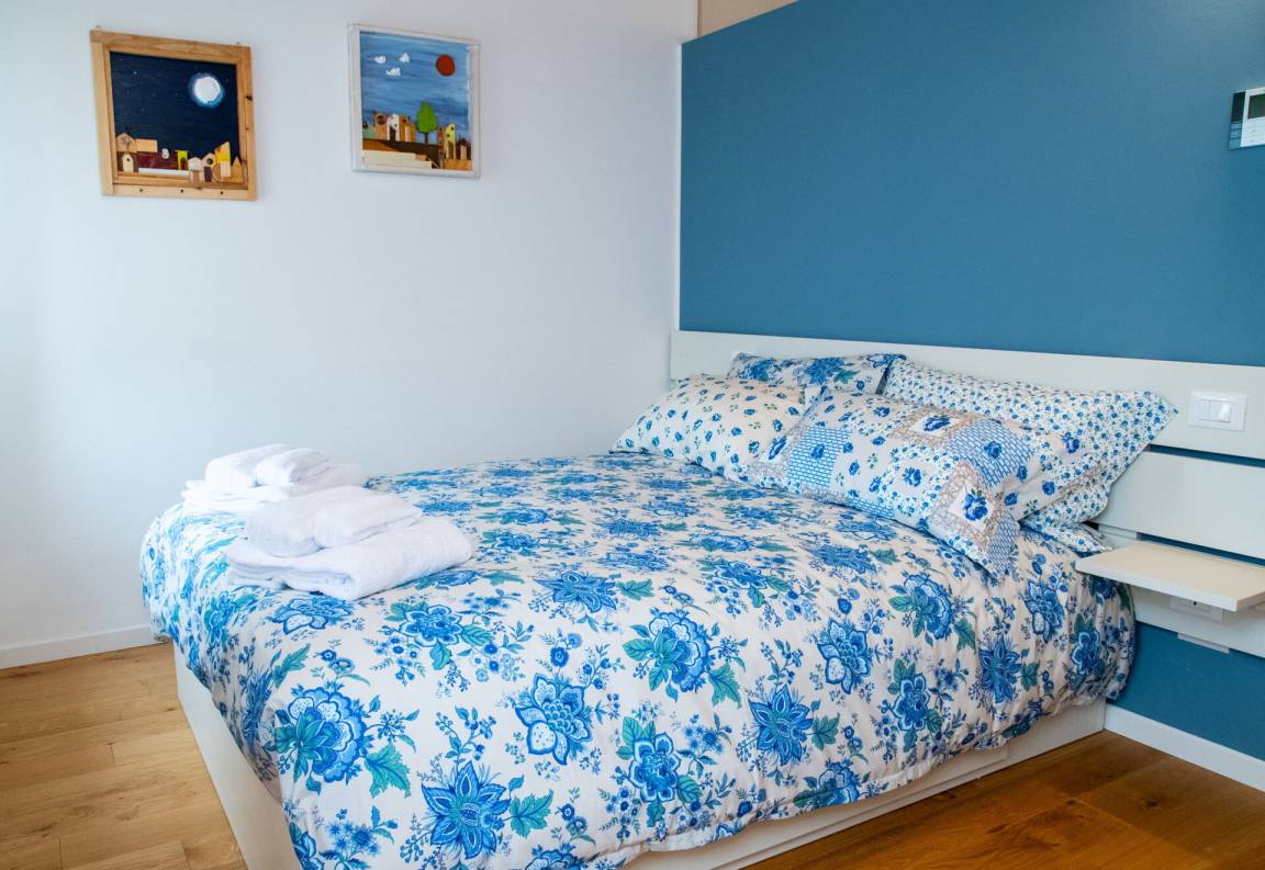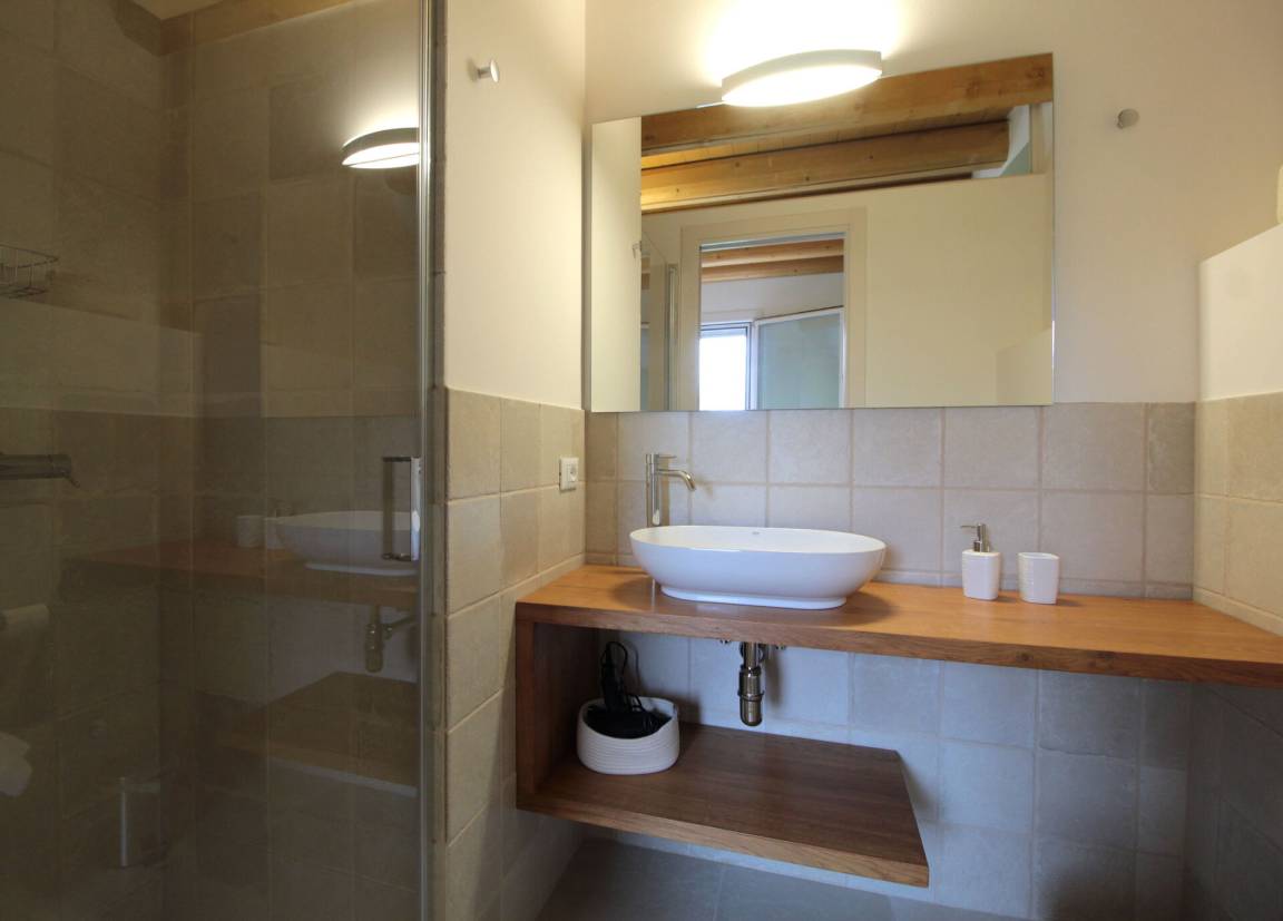 Schlafzimmer mit Bad 4: französisches Bett, WiFi Internet, Klimaanlage, Satelliten-TV, Waschbecken, WC, Dusche.