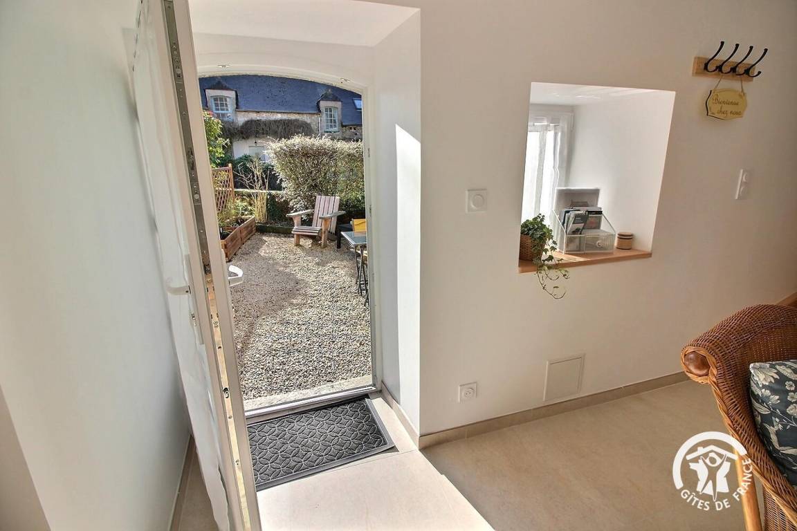 Der Wohnbereich ist durch eine niedrige Tür zugänglich, typisch für alte bretonische Häuser.