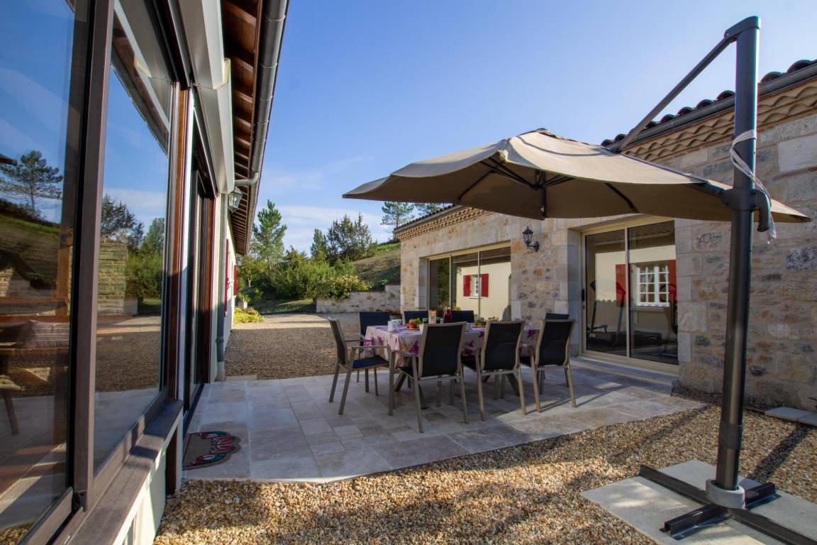 „Accueil top !Maria et par la suite Jésus ont été: Comme des amis !ce fut vraiment très agréable !Pour ce qui est du logement: Parfait avec une véranda très lumineuse dont nous avons bien profité;la piscine a été également appréciée ainsi que la salle de sport pour les jours frisquets ou pluvieux !Nous avons fait aussi de belles visites dans la région.Enfin tout cela pour dire que nous gardons l'adresse pour un autre séjour dans le Périgord !Encore merci à Maria et Jésus, ne changez pas surtout !De la chaleur humaine, que ça fait du bien!Françoise et Michel“