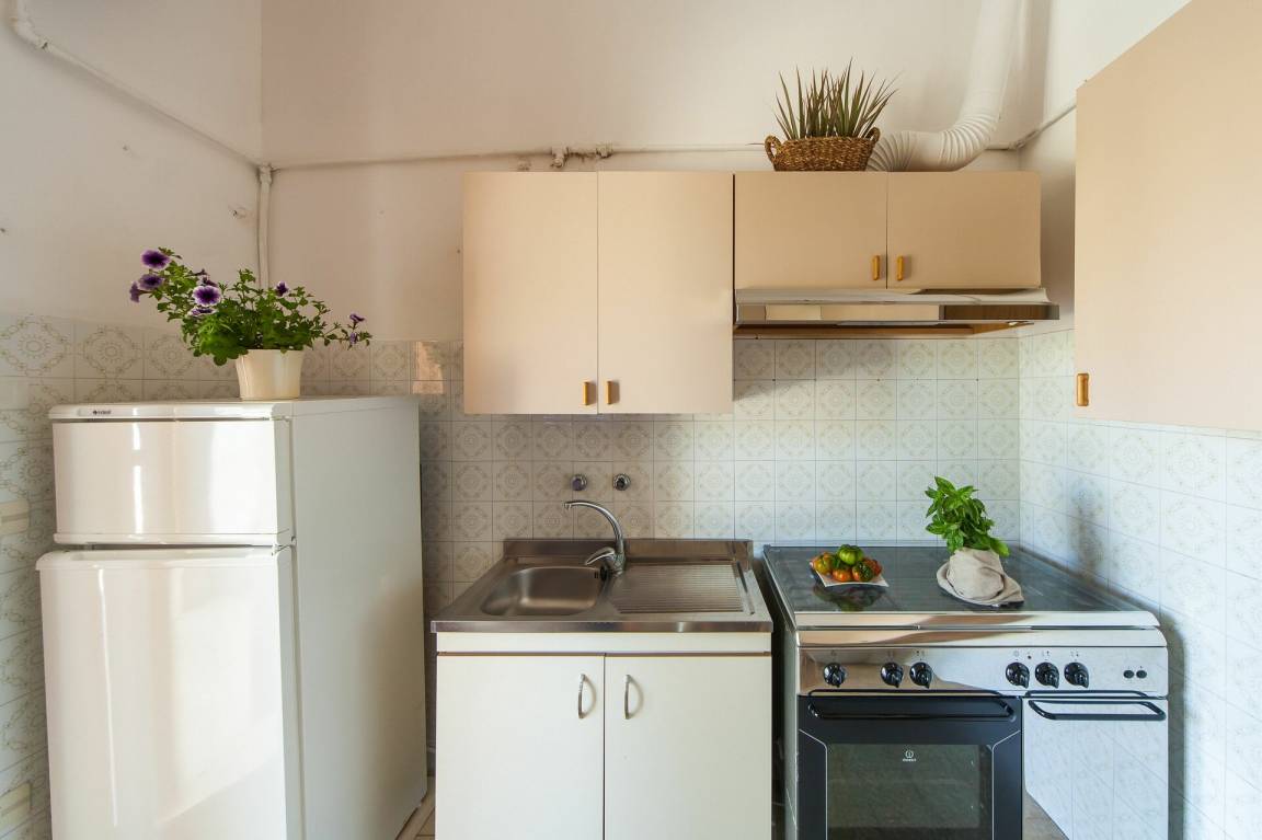 Küche: Kühlschrank, Tiefkühler, Herd, Ofen, WiFi Internet, Ausgang auf den Patio.