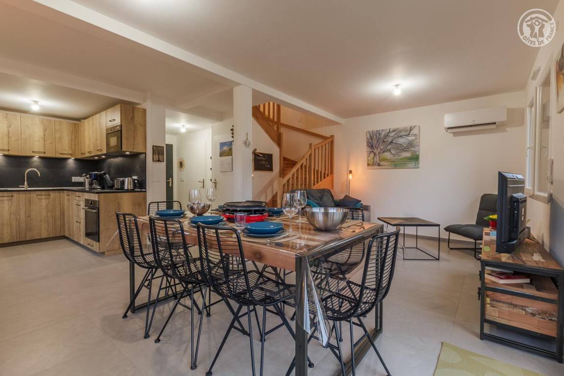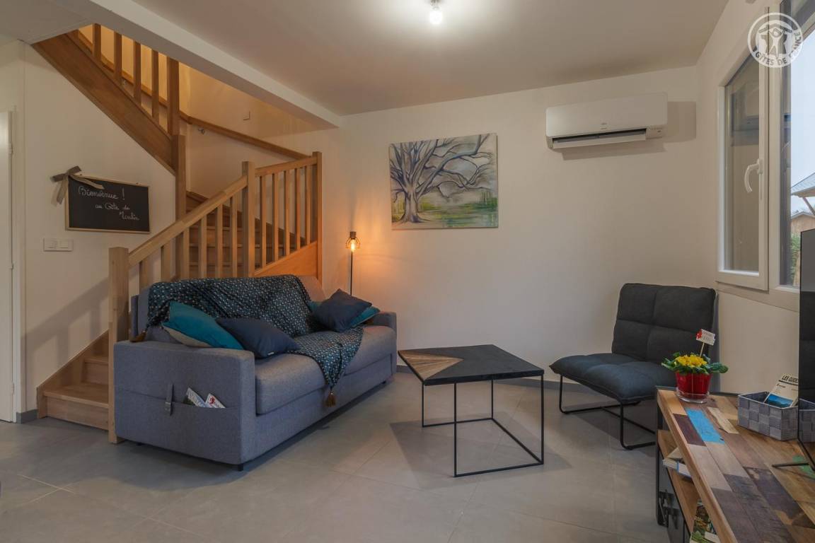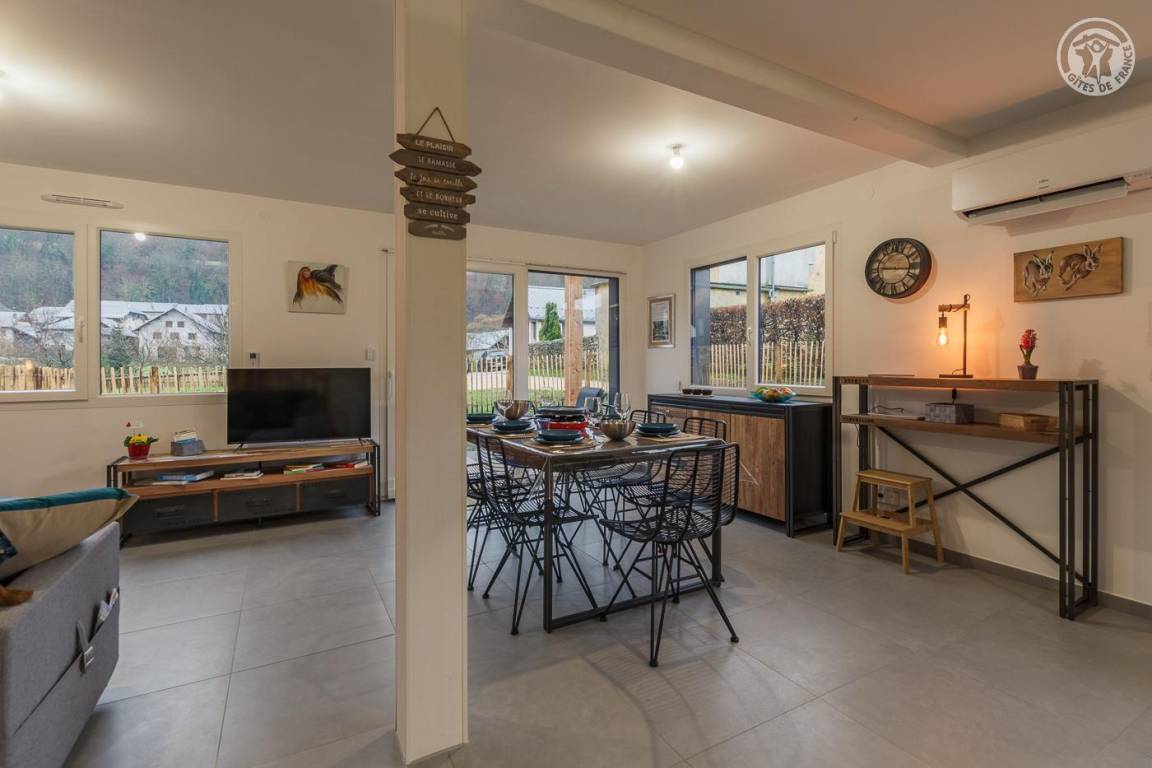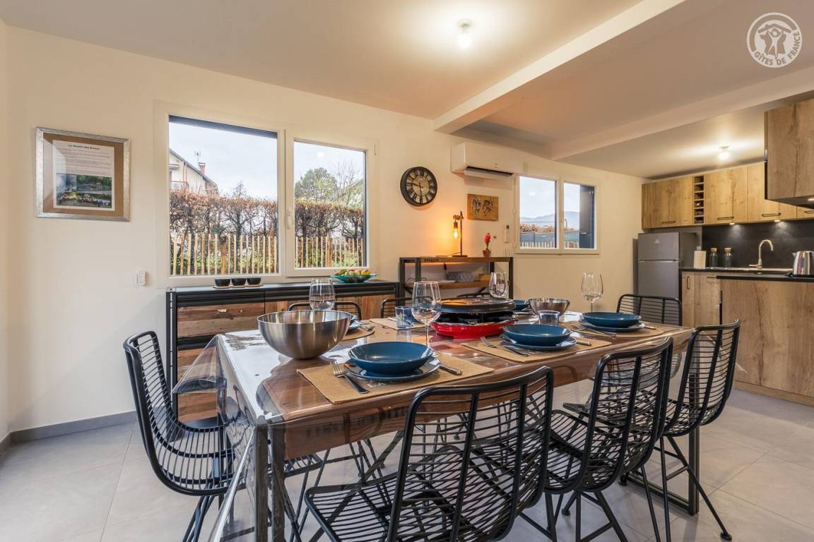 Reihenhaus bestehend aus 2 Gîtes, im Herzen des Dorfes gelegen. Moderner und warmer Stil, schönes Licht im Wohnzimmer durch die Erkerfenster. Hochwertige Ausrüstung und Dienstleistungen. Individueller Fahrradraum mit Platz für 6 Fahrräder. Geschäfte und Dienstleistungen, Supermarkt und Tankstelle in Montmélian (9,5 km).