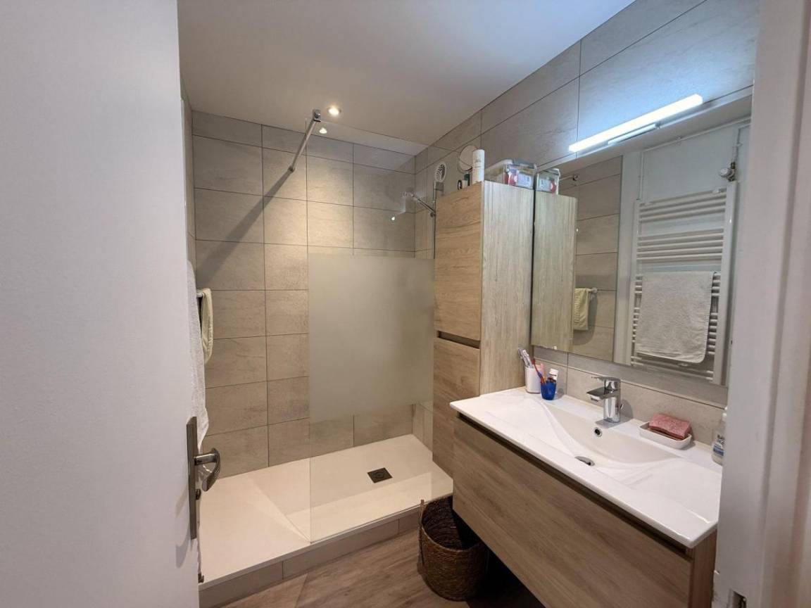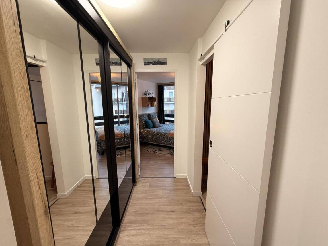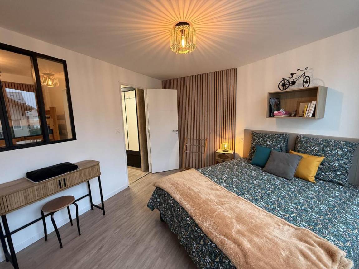 Fläche von ungefähr 59 m² enthält 1 m² unter 1,80 m. 2te Etage. Orientierung : Süd, Süd-West, West. Wohnzimmer mit Klappschlafcouch, TV. Schlafzimmer mit Doppelbett (160*200). offener Schlafbereich mit 2 Stockbetten (90). Kochnische mit Wasserkocher, Kaffeemaschine (filtre+tassimo), Backofen, Toaster, Geschirrspülmaschine, Mikrowellenherd, 2 Glaskeramikkochfelder, Kühl-Gefrier-Kombination. Waschräume mit Waschmaschine. WC. Die oberen Betten sind nicht für Kinder unter 6 Jahren geeignet.