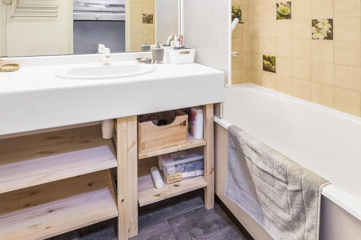 Fläche von ungefähr 29 m². 2te Etage. Orientierung : Süd. Blick berg. Wohnzimmer mit Klappschlafcouch, 2 Ausziehbetten. offener Schlafbereich mit zusätzliches Einzelbett, 2 Stockbetten. Kochnische mit Raclettegerät, Kaffeemaschine, kleiner Backofen mit Mikrowellenfunktion, Toaster, Induktionsherdplatten, Kühlschrank. Badezimmer mit Badewanne. separates WC. Balkon. Die oberen Betten sind nicht für Kinder unter 6 Jahren geeignet.