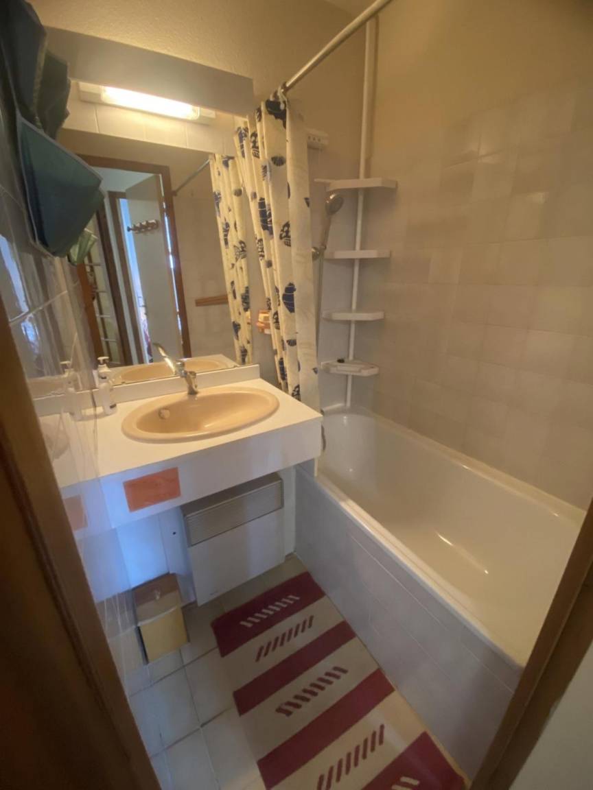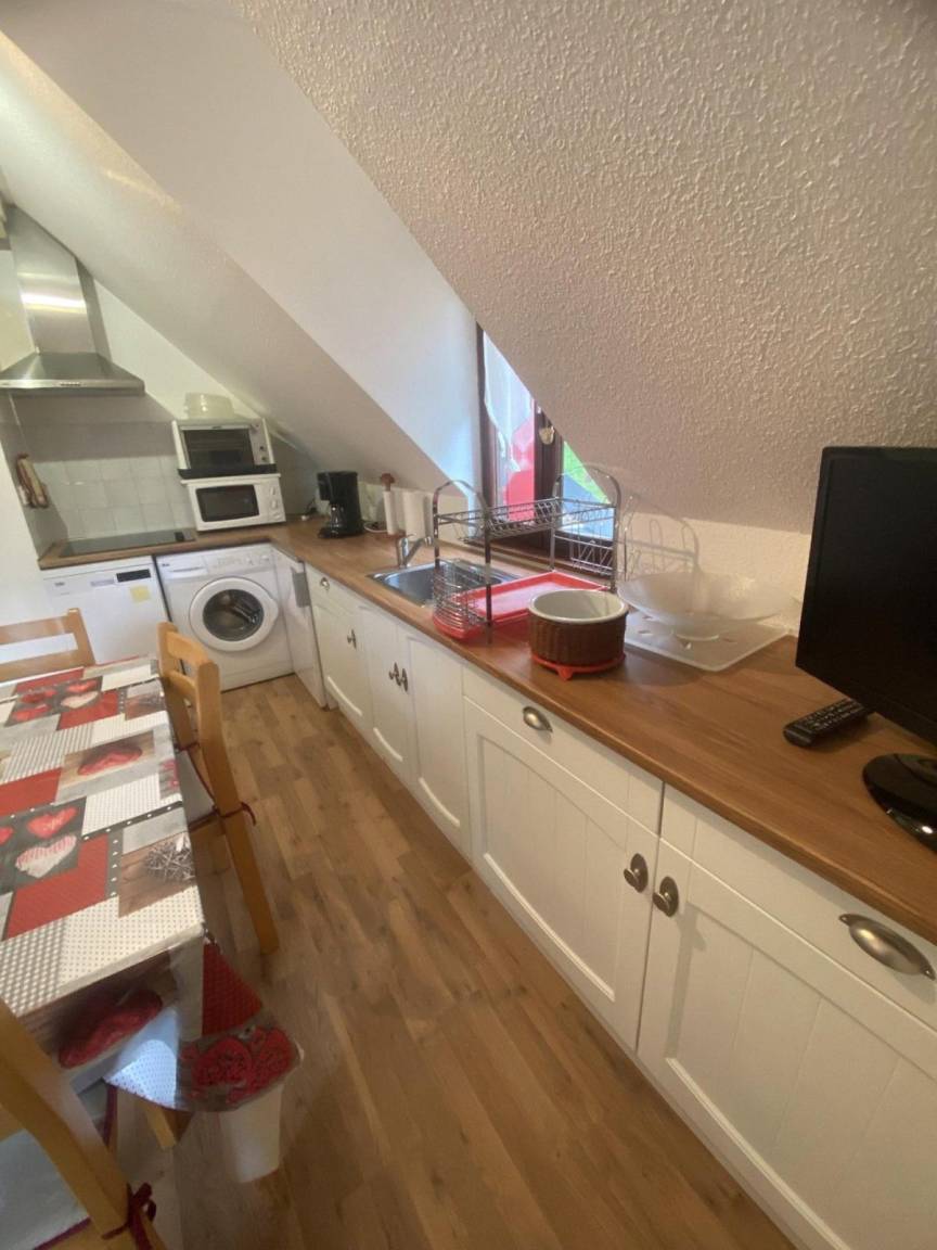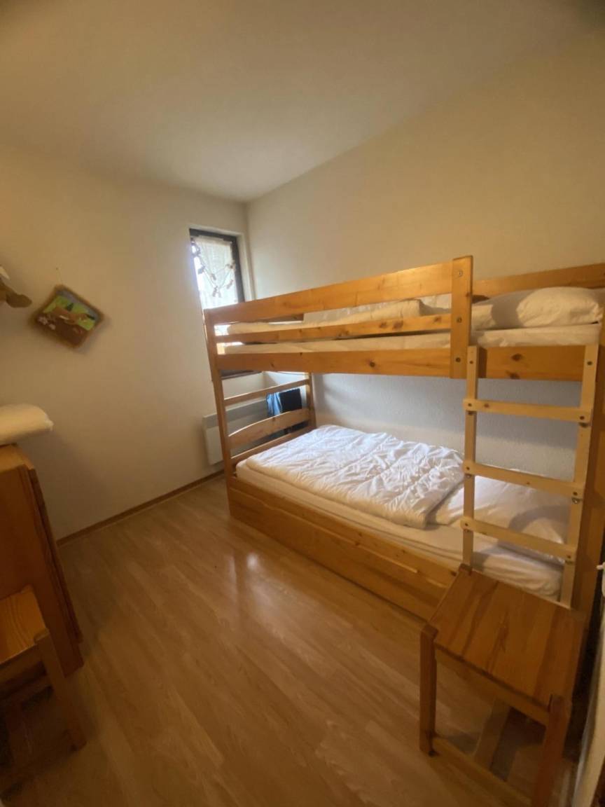 Fläche von ungefähr 43 m² enthält 1 m² unter 1,80 m. 3te Etage. Orientierung : Süd. Blick berg und Garten. Wohnzimmer mit Sofa. Schlafzimmer mit Doppelbett (140). Schlafzimmer mit Ausziehschlafcouch für 2 Personen, 2 Stockbetten. Kochnische mit Waschmaschine, Geschirrspülmaschine, Mikrowellenherd, kleiner Backofen, Herdplatten, Kühlschrank. separates WC. Badezimmer mit Badewanne. Balkon. Die oberen Betten sind nicht für Kinder unter 6 Jahren geeignet.