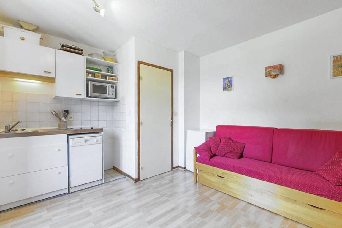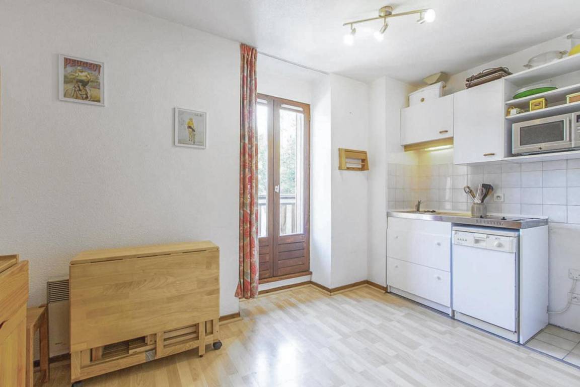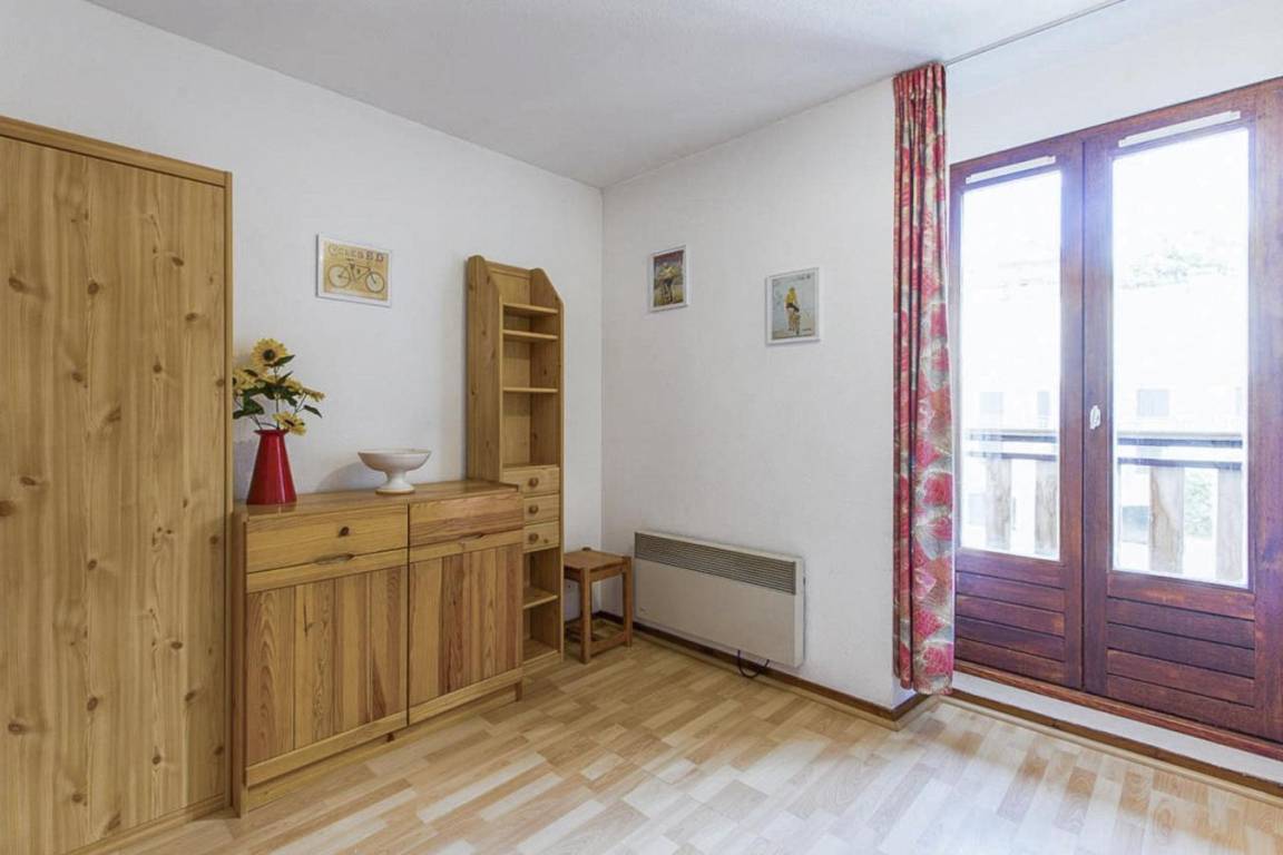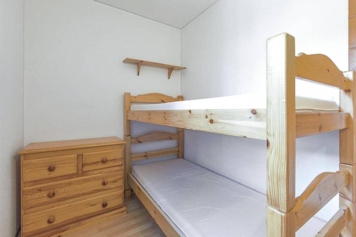 Fläche von ungefähr 23 m². 3te Etage. Orientierung : Nord. Wohnzimmer mit Ausziehschlafcouch für 2 Personen. Schlafzimmer mit 2 Stockbetten. Küche mit Fonduegerät, Raclettegerät, Kaffeemaschine, kleiner Backofen mit Mikrowellenfunktion, Geschirrspülmaschine, Mikrowellenherd, 2 Glaskeramikkochfelder, Kühlschrank. Badezimmer mit Badewanne, WC. Balkon. Die oberen Betten sind nicht für Kinder unter 6 Jahren geeignet.