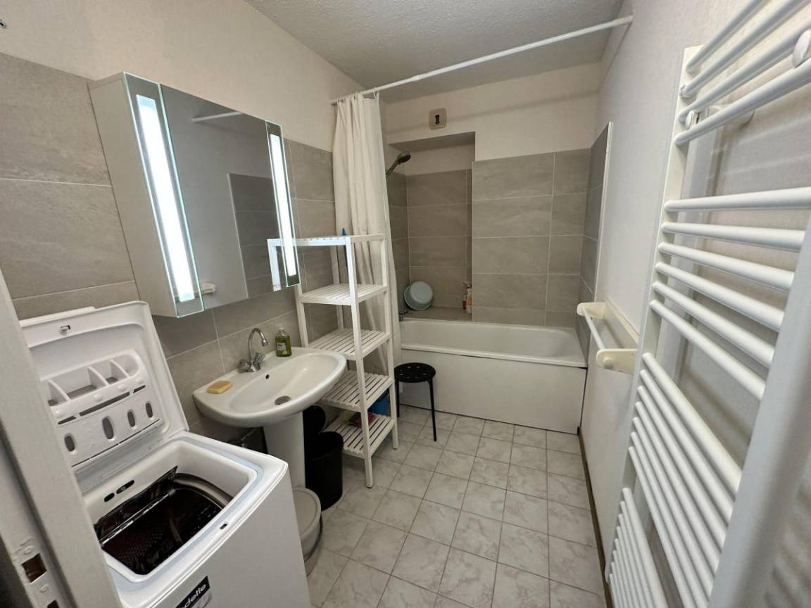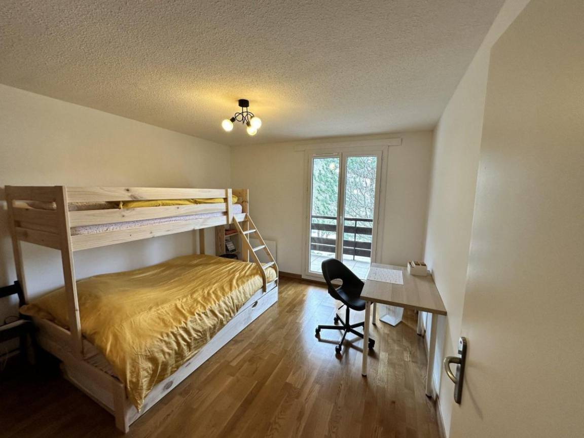 Fläche von ungefähr 51 m². Etage -2. Orientierung : West. Wohnzimmer mit Klappschlafcouch. Schlafzimmer mit Doppelbett (160), einfaches Mezzanine Bett (90), Ausziehbett (90). Kochnische mit Raclettegerät, Wasserkocher, Kaffeemaschine (Dolce Gusto), Backofen, kleiner Backofen mit Mikrowellenfunktion, Toaster, Geschirrspülmaschine, Mikrowellenherd, 3 Glaskeramikkochfelder, Kühlschrank. Waschräume mit Waschmaschine, Handtuchtrockner. Terrasse mit Gartentisch und -stühle.