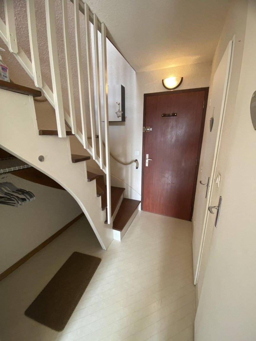 Fläche von ungefähr 43 m². 5te Etage. Orientierung : Süd. Wohnzimmer mit Klappschlafcouch (2 personnes). Schlafzimmer mit Doppelbett (140x190). Schlafbereich mit 2 Stockbetten (90x190). Küche mit Raclettegerät, Wasserkocher, Kaffeemaschine (Senseo), kleiner Backofen mit Mikrowellenfunktion (grill), Toaster, Waschmaschine, 2 Herdplatten. Badezimmer. Balkon. Waschmaschine. Die oberen Betten sind nicht für Kinder unter 6 Jahren geeignet.
