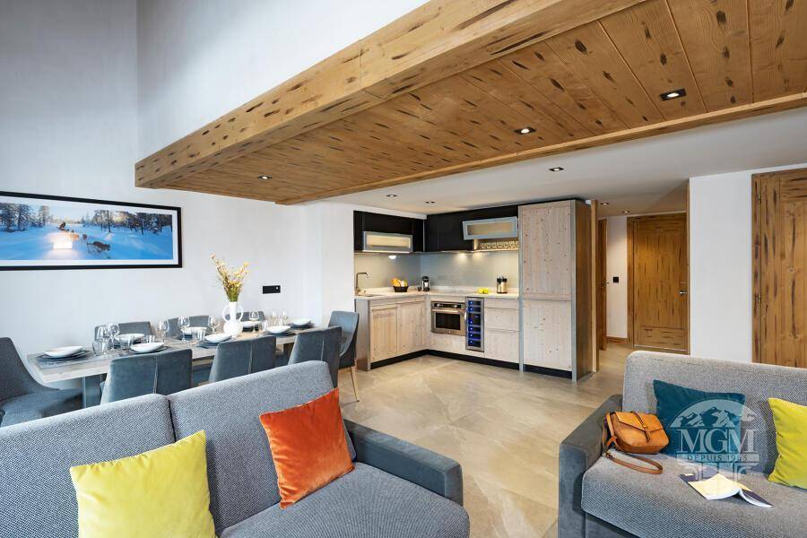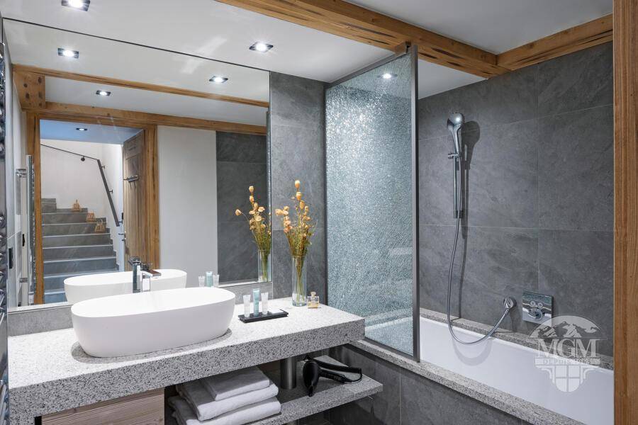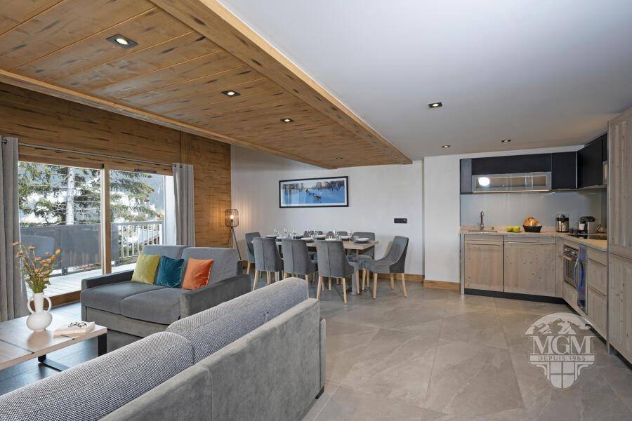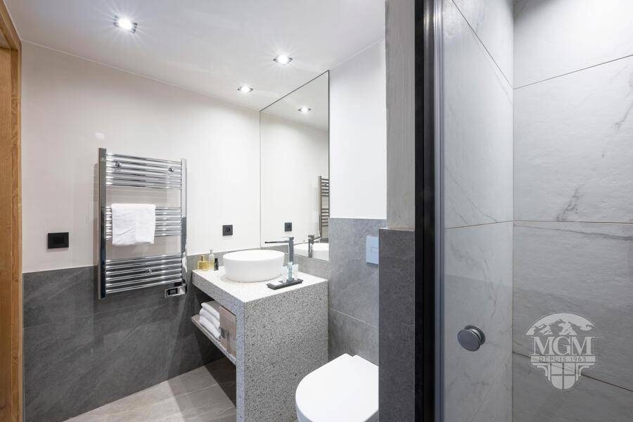 Fläche von ungefähr 90 m². Blick berg. Wohnzimmer mit Klappschlafcouch (en 2 lits simples). Schlafzimmer mit Dusche, Doppelbett. 2 Schlafzimmer mit 2 Einzelbetten. Küche mit Wasserkocher, 2 Kaffeemaschinen (filtre et Nespresso), , kleiner Backofen mit Mikrowellenfunktion, Toaster, Geschirrspülmaschine, 2 Induktionsherdplatten, Kühlschrank. Badezimmer mit Badewanne, Haartrockner, Handtuchtrockner. separates WC. Waschräume mit Dusche, Handtuchtrockner, WC. Balkon mit Gartentisch und -stühle.